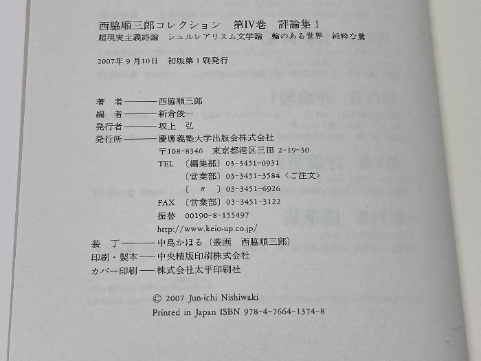 | 西脇順三郎コレクションⅣ 評論集1 慶應義塾大学出版会株式会社 西脇順三郎 慶應義塾大学出版会株式会社 西脇順三郎 | |