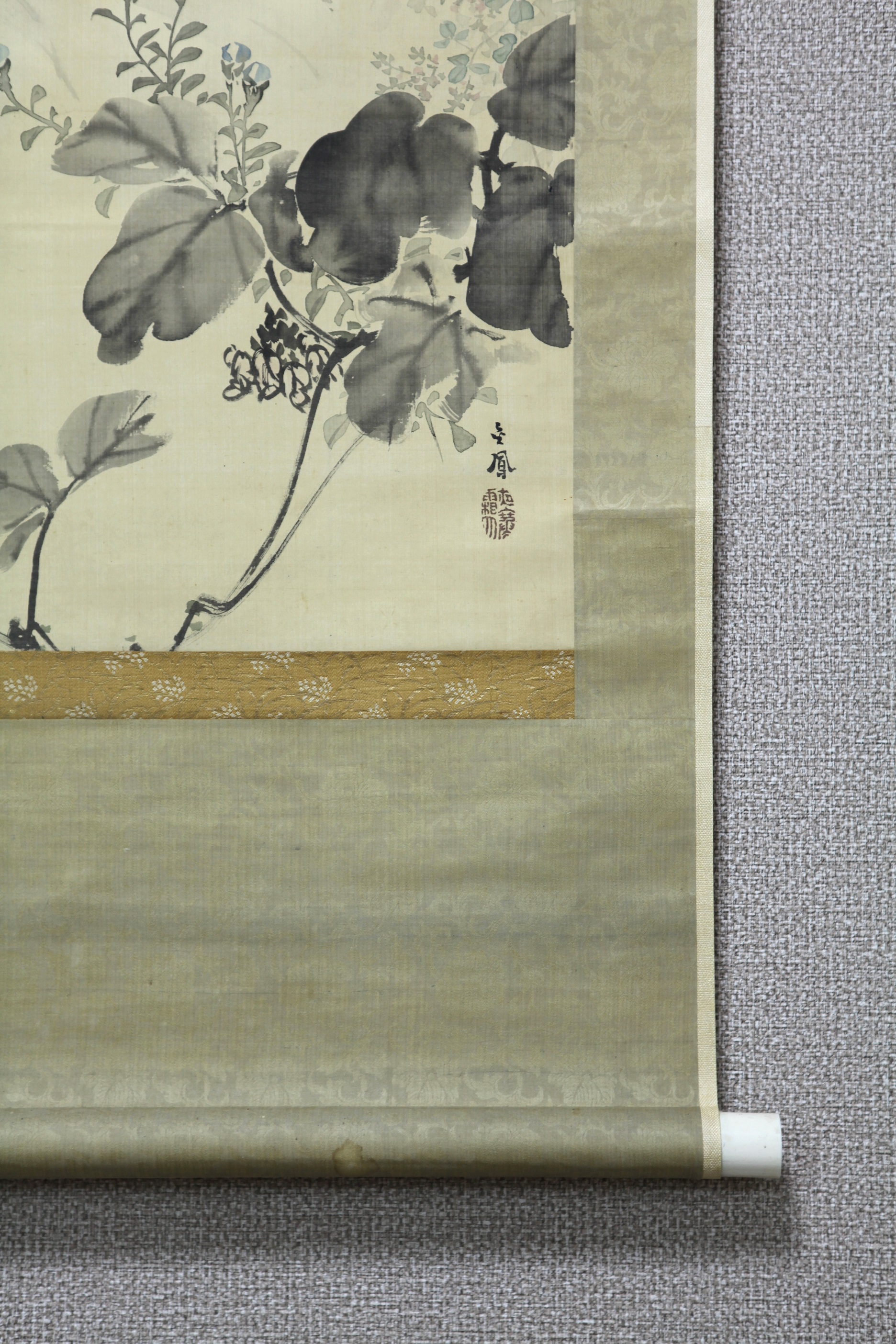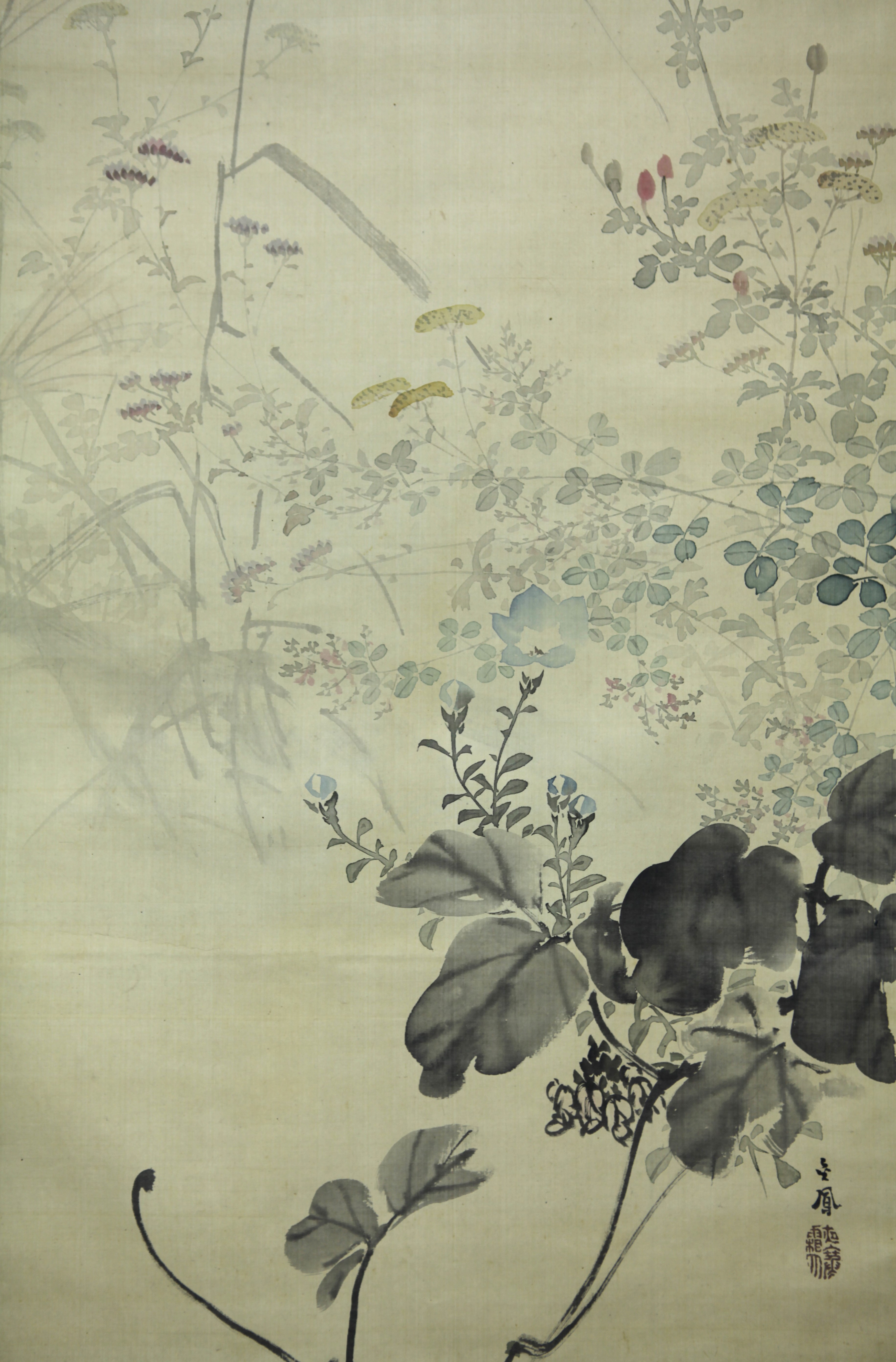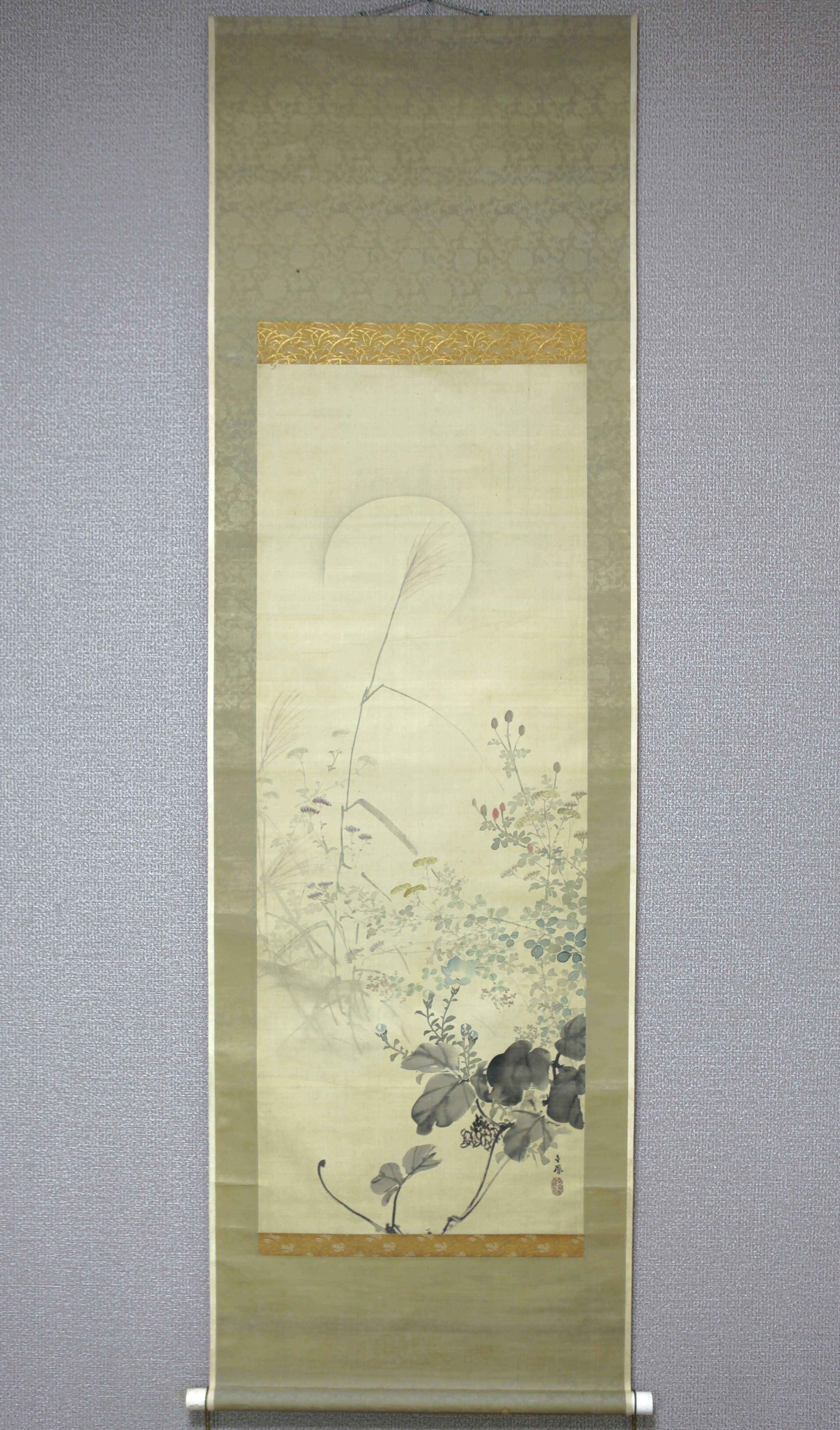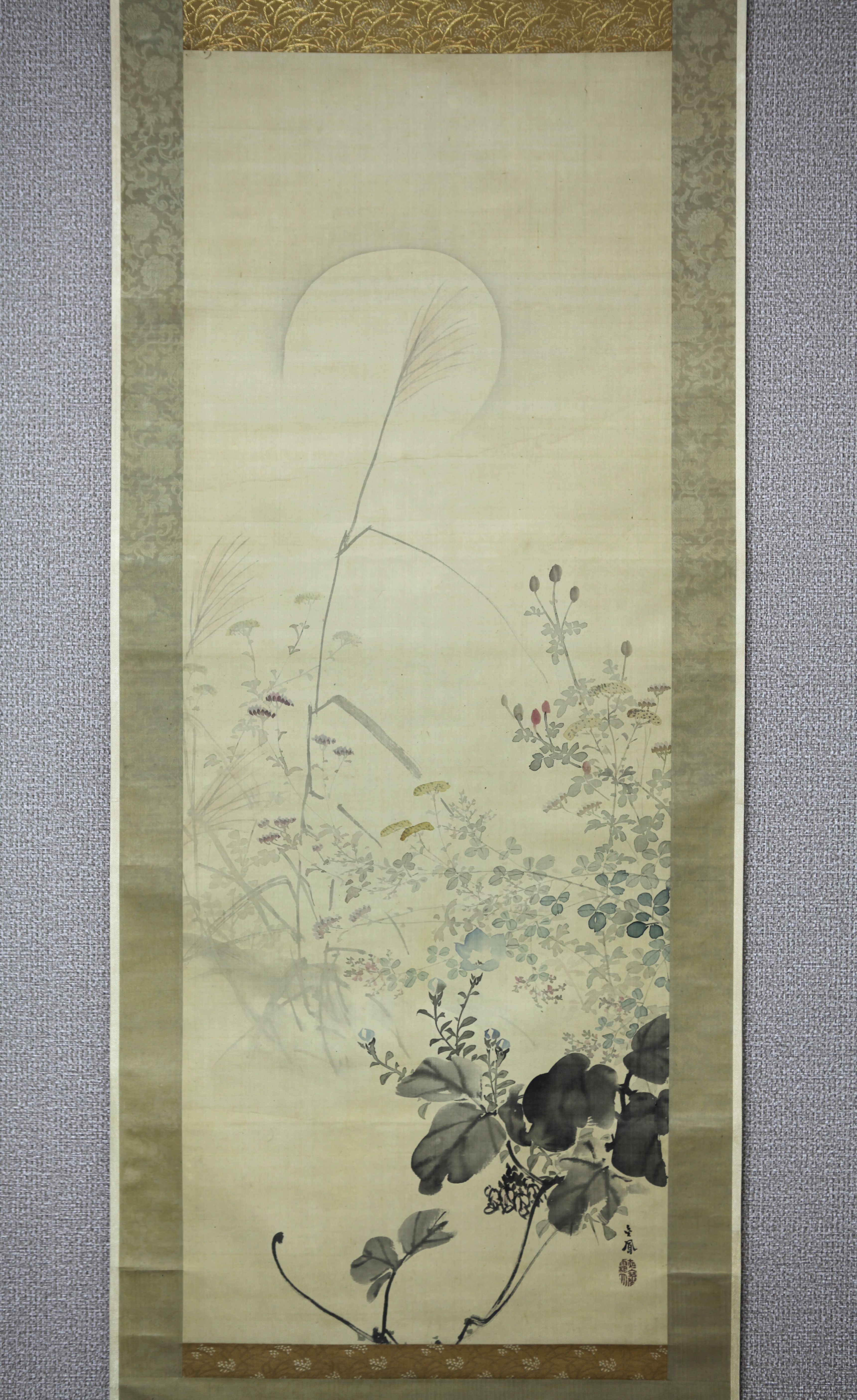 | 【真作】【風車】 望月金鳳 「月下秋草図」◎肉筆絹本◎明治時代 大阪の人 文展審査員 森二鳳 西山完瑛に師事 | ||||||||||||||||||||