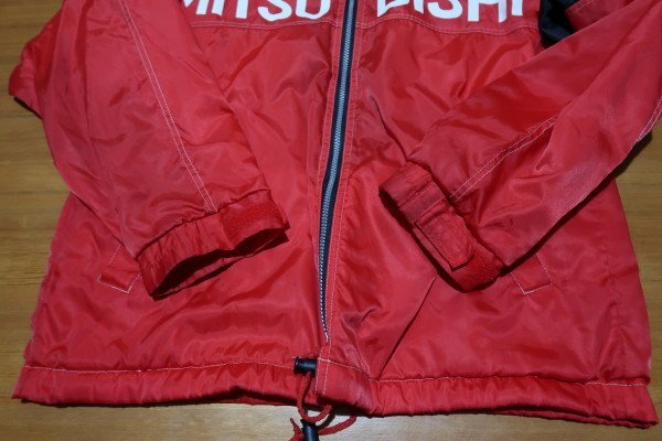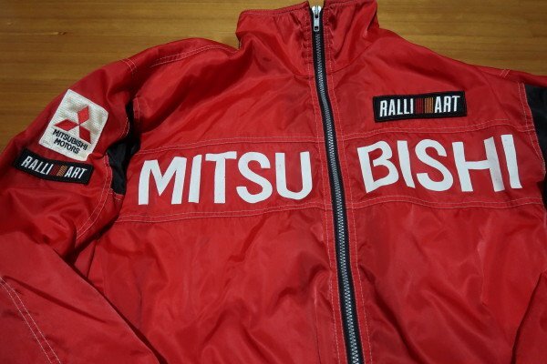 三菱 ラリーアート ナイロンジャケット Mサイズです、肩幅約52cm 着丈約71cm 身幅約61cm 袖丈約59cmです、多少使用感があり腹部に染みがあります、袖のゴムが伸びています、バックプリントが剥げています、発送はレターパックプラスのみになります。
