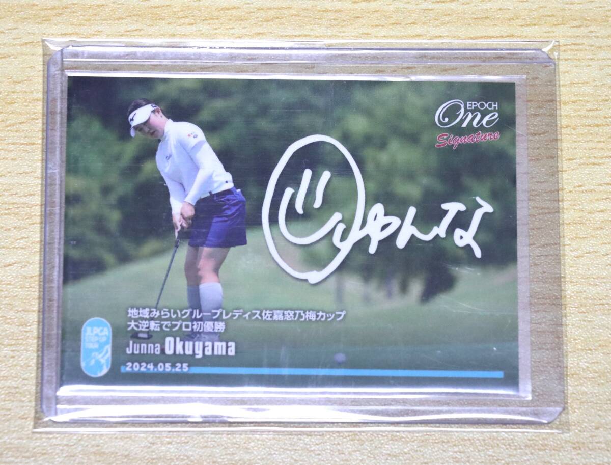 プロゴルファー 奥山純菜 EPOCH ONE エポックワン プリントシグネチャーカード(プリントサインカード) 佐嘉窓乃梅カップ 45枚限定発行です。気に入って頂けた方の落札を心よりお待ちしております。 商品は定型郵便(110円)又はゆうパケットポストミニで発送致します。厚さの関係上、定型郵便の場合は片面段ボール補強、ゆうパケットポストミニの場合は両面段ボール補強となります。どうかよろしくお願い致します。