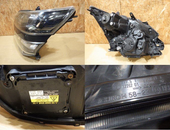 | 備考 | ヘッドライト左右セット、純正、ICHIKOH 58-23、HID/レベライザー、写真にある物のみ、 ジャンク品(状態が悪い)、取付キレ(破片アリ)、右側:レンズ下クリアパネル一部欠損(使用に支障ナシ)、全体:傷&汚れ&キバミ&細かいヒビ&飛び石キズ&クリアハゲ、 | ||||