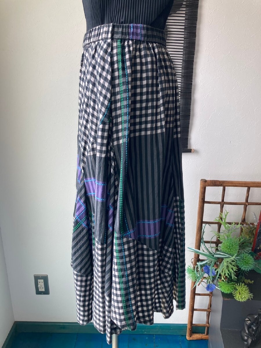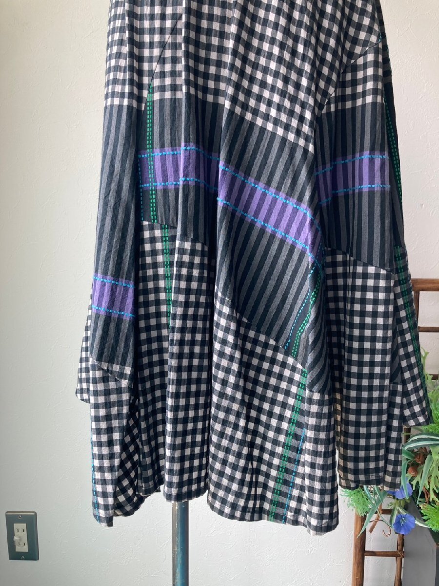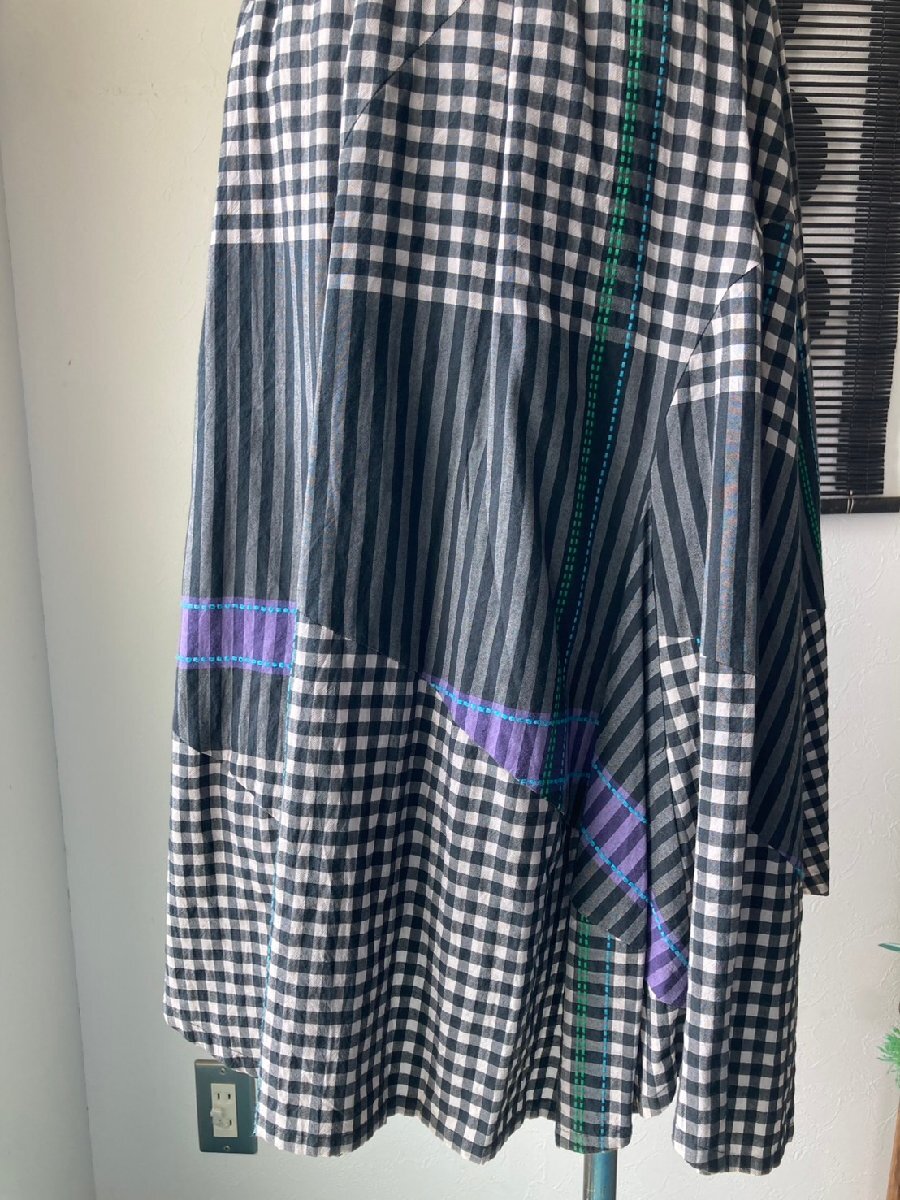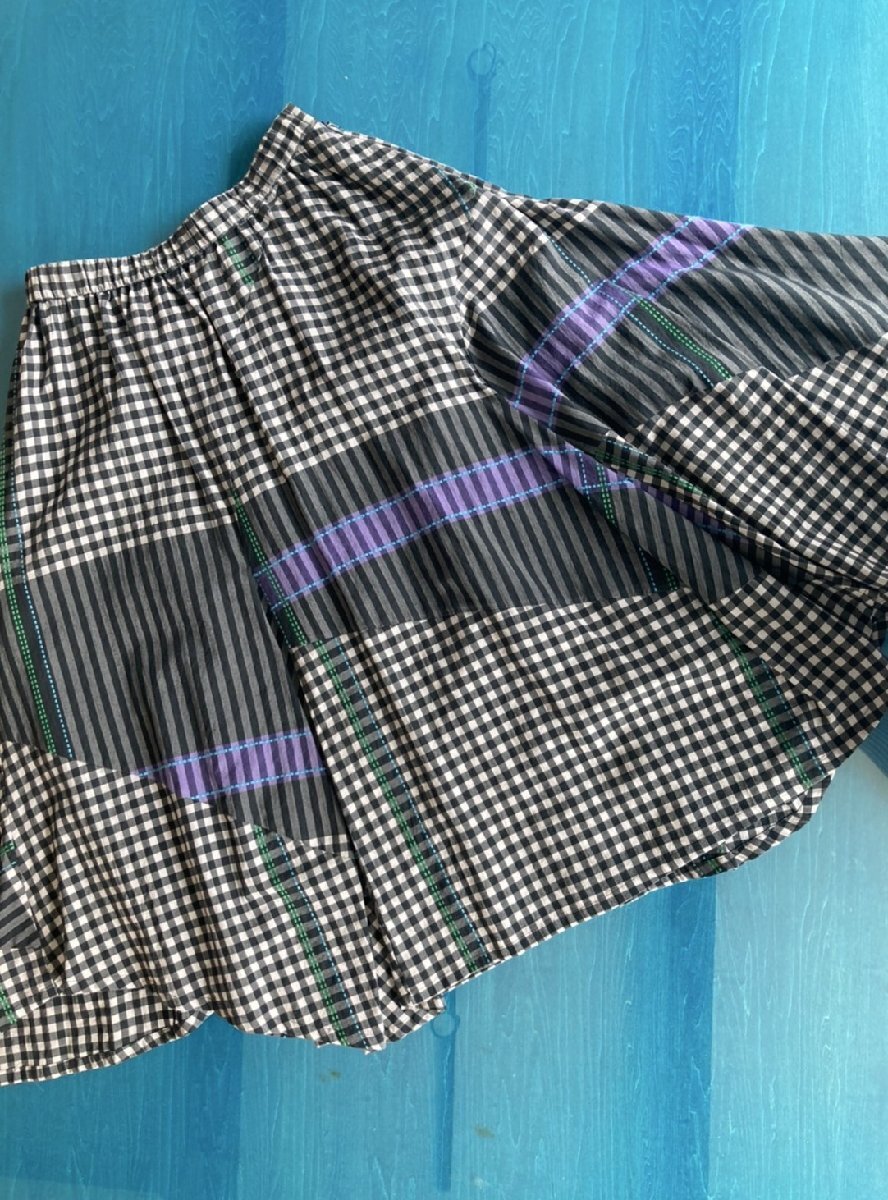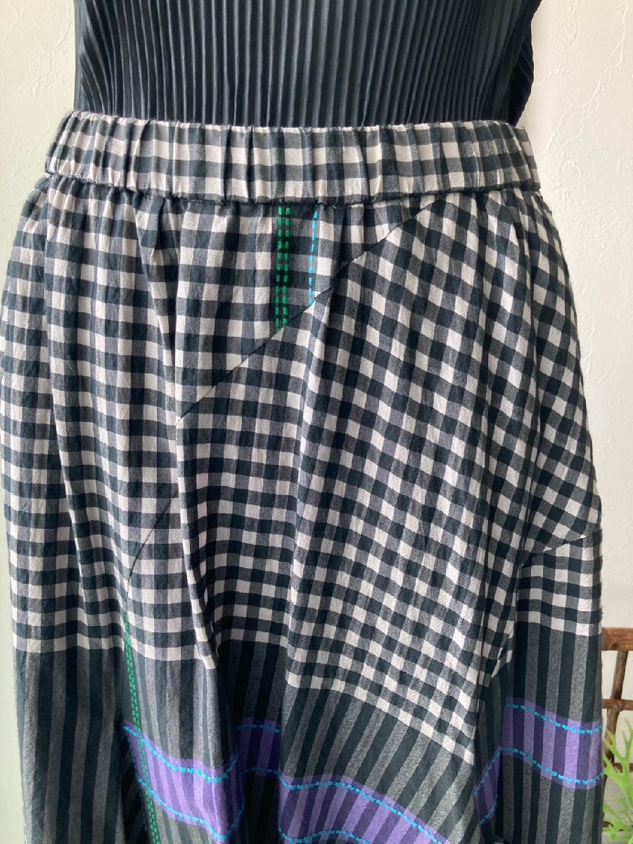 ブラック 薄グレー ブルー グリーン パープル/チェック ストライプ 点線刺しゅう