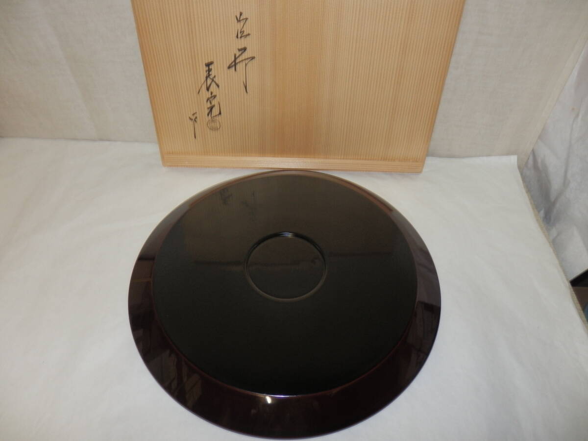 「中古品・茶道具」 平安塗師の川瀬表完さんの丸盆です。庸軒好写です。経年で盆に反りがあります。径約36.5cm 厚み約2.8cm 共箱「ヤケ、シミ等有」。 どうぞ宜しく。