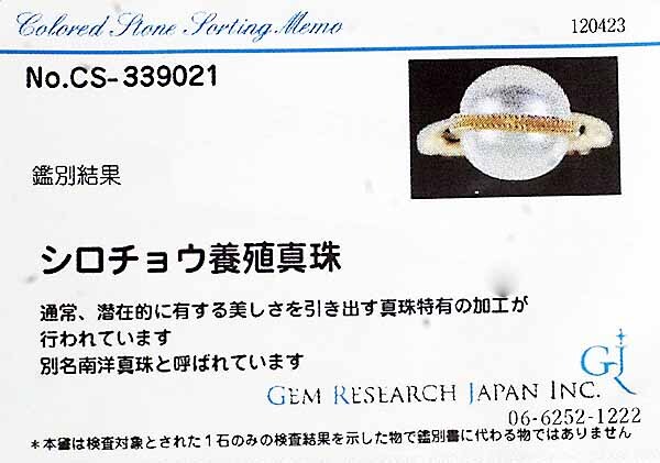 南洋真珠を輪の中にセットしたタサキの18金製ファッションリング。| 商品詳細 | |||||||||||||||||||||||||||||||||||||