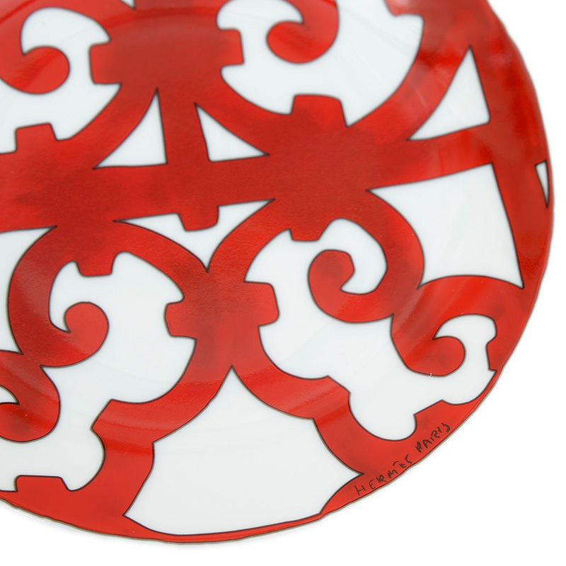 | 商品特徴 | スペインのコルドバ地方にあるセビリアの装飾的な鉄細工門からインスピレーションを得た、大胆で情熱的な赤と白のデザインが特徴のデザートプレートです。複雑に絡み合うアラベスク模様が食卓に華やかさとエキゾチックな雰囲気を添え、デザートだけでなく取り皿としても活躍する、芸術的な逸品です。 |