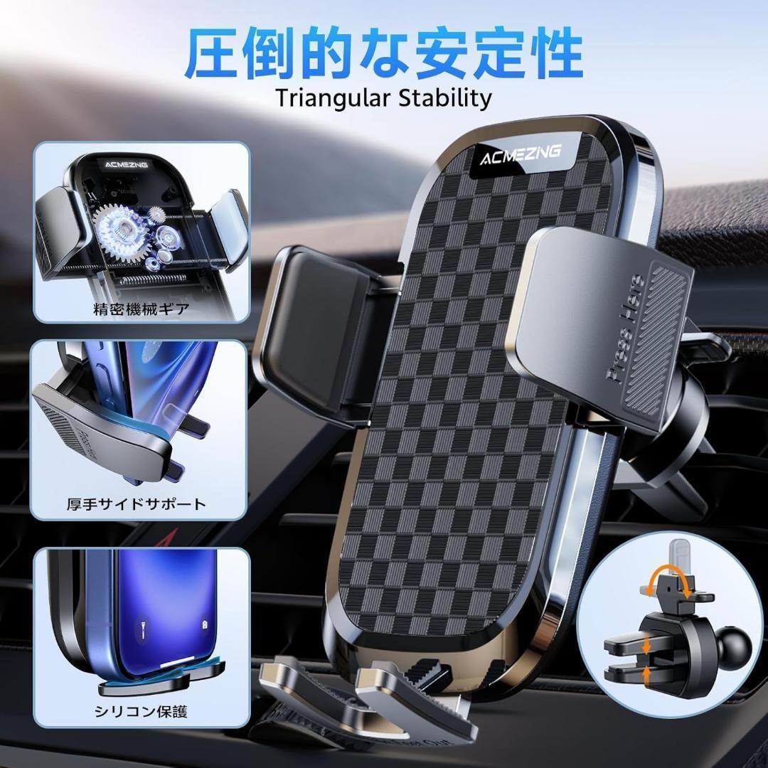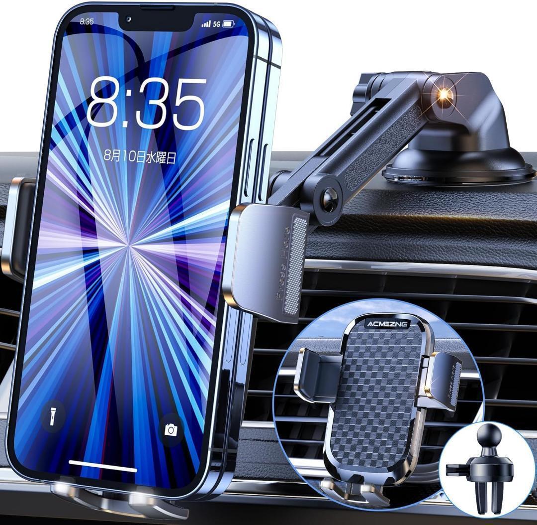 スマホホルダー 車 ACMEZING 車載ホルダー【業界改良3段クリップ式+3軸機械式伸縮アーム】 車 スマホスタンド カー用品 携帯ホルダー 車 エアコン吹き出し口&超強力真空吸盤兼用2in1 片手操作 安定性拔群 車載スマホホルダー 自由調節 360度回転 車用スマホ