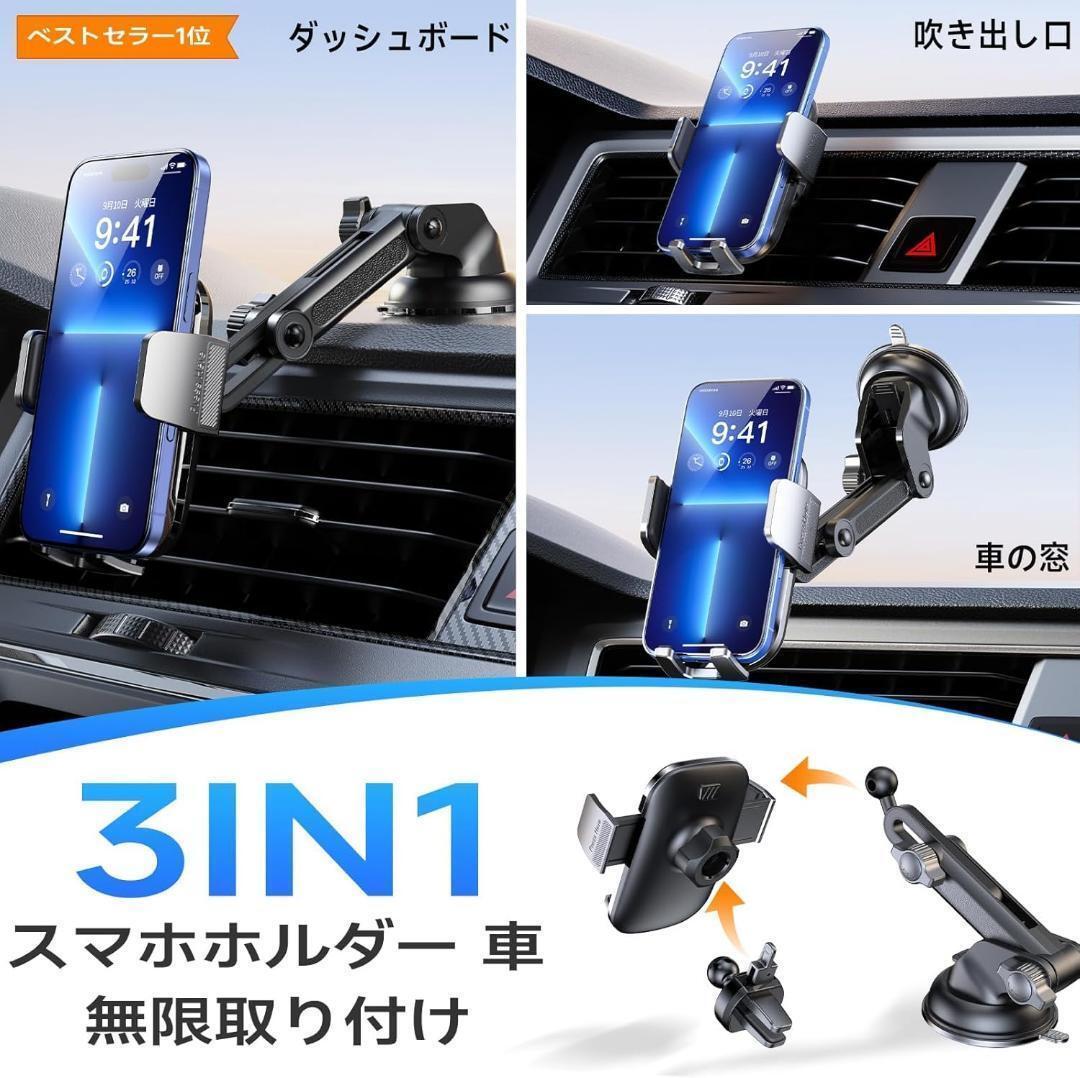 A スマホホルダー 車載ホルダ 3段クリップ式 携帯 吹き出し口 超強力真空吸盤