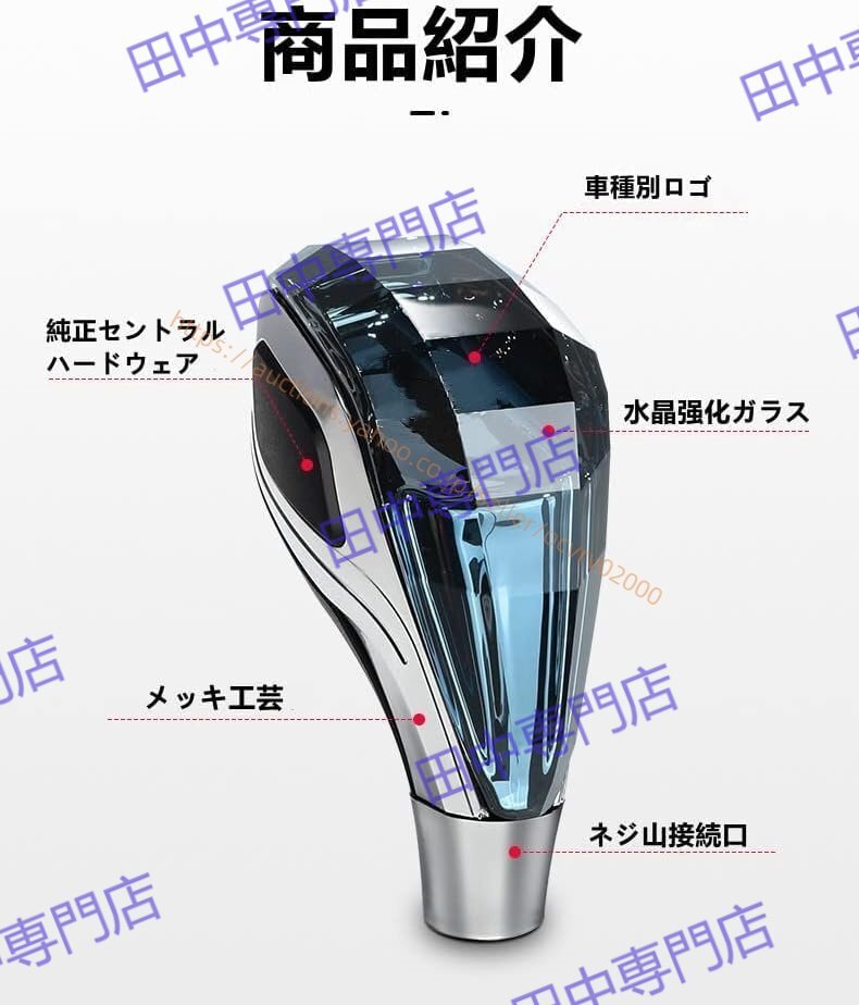 商品をご注文の前に必ず弊社の商品画像とご愛車のデザインをご確認の上、ご注文をお願い致します。商品入荷までに時間を頂くのと店頭での売切れがある商品ですのでご理解できる方のみでの購入でお願い致します。☆K9水晶の立体多面カット技術により、材質が硬くて耐摩耗性があります。細かく高透明K9クリスタルスで研磨されます、光の透過率と屈折率が非常に高く、立体多面カット技術により、材質が硬くて耐摩耗性があります。☆タッチが光に変わり、七色光が自動的に変換されます。触れると光る! 中央部に触れるとセンサーが反応して7色に変化しながら光ります。内蔵LEDが約30秒間点灯します。☆USB経由で充電が可能。モバイル電源、車のUSBポートで充電できます。長効率の充電電池を内蔵する(一回で20日間ぐらい充電できる)。☆据え付け時は、ねじって、緩めて、シフトノブを取り外して交換すればいいです。取付可能条件?トヨタ純正M8タイプのゲート式AT車?シフトノブがネジやビスで固定されておらず、反時計回りに回すだけで外せるタイプ ?配線やスイッチが付いていないシフトノブ。トヨタMT、防塵カバー、ボタン、双くの版などのは装着できません。☆注意:ATギアヘッドのボタンなしモデルに適しており、MTマニュアル車には適していません。トヨタMT、防塵カバー、ボタン、双くの版などのは装着できません。
