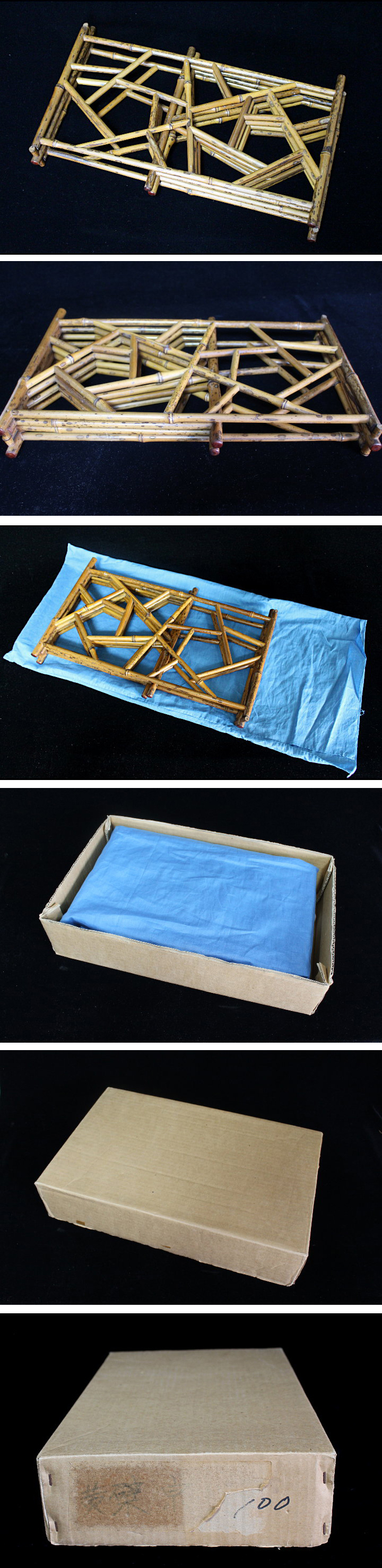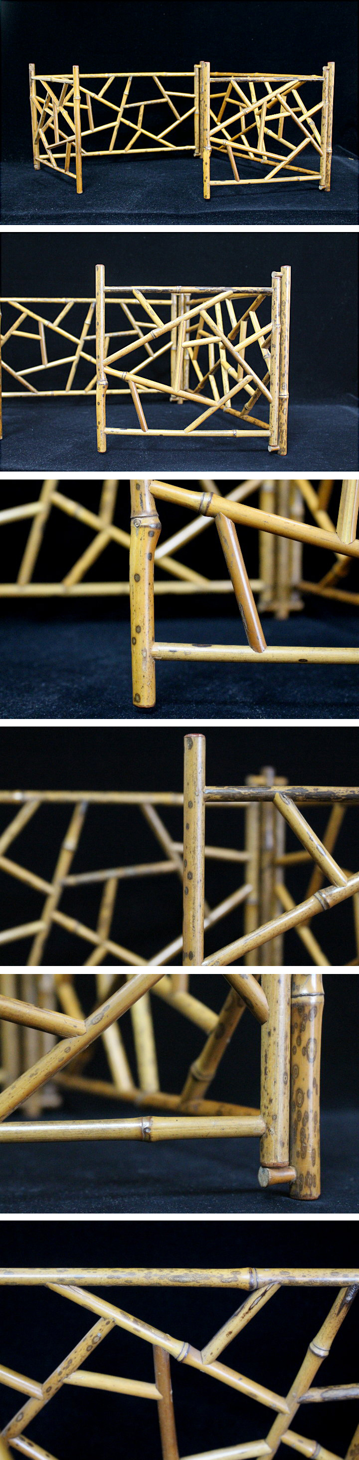 サイズ:全長122.5cm 時代 氷裂 班竹組四折結界 炉屏です。 多少の経年変化は見られますが、大きな欠点はなく状態は良好です。 小さなアタリ・傷など見落としかあるかもしれません。 全長 :122.5cm 巾・袖:22.8cm 中央袖:79.4cm 丈 :23.8cm 付属 :青色の袋 写真をご覧の上ご入札宜しくお願い致します。 |