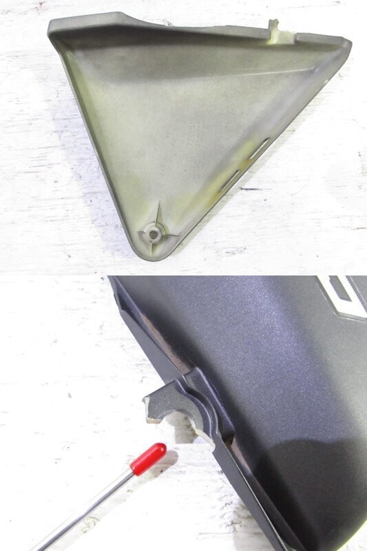 【外装】 ☆タンク・・・補修ベース!! タンク内は錆取をされているようですが見える範囲に少し錆があり一部穴あきが御座います! 補修ベースにご活用ください! 一部傷や凹み、給油口フチ歪みが御座います! ☆フロントカウル・・・程度良好!! 特に気になるような破損はなく、艶も御座います! 比較的状態の良い商品となります! 一部傷が御座います! スクリーン付きとなります! ☆Fフェンダー・・・特に大きな破損は御座いません! 一部傷や補修ヵ所が御座います! ☆サイドカバー・・・左右共に特に大きな破損は御座いません! ネジ止め部の欠けが御座います! ☆テールカウル・・・特に大きな破損は御座いません! 一部傷や割れ欠けが御座います! ☆Rフェンダ-・・・特に気になるような破損は御座いません! ☆シート・・・特に大きな破損は御座いません! 一部軽いレザー破れが御座います!
