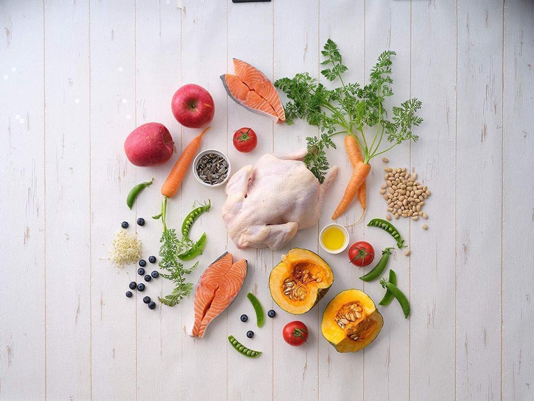 オーガニックチキン生肉、乾燥チキン、オーガニック乾燥豆類、オーガニックエンドウ豆粉、オーガニックエンドウ豆プロテイン、オーガニック乾燥ヒヨコ豆、オーガニックタピオカ粉、オーガニック乾燥アルファルファ、オーガニックひまわり油*、天然フレーバー、オーガニック挽き割りフラックスシード、オーガニック乾燥ジャガイモ、鶏脂肪*、乾燥サーモン、エンドウ豆でんぷん、乾燥トマト繊維、乾燥レンズ豆、乾燥ビール酵母、サーモンオイル*、ミネラル類(塩化カリウム、亜鉛、鉄、銅、コバルト、マンガン、食塩、ヨウ素酸カルシウム) 、亜セレン酸ナトリウム)、タウリン、オーガニックひまわりの種、乾燥かぼちゃ、乾燥ブルーベリー、オーガニック乾燥にんじん、乾燥ブロッコリー、オーガニック乾燥大豆、加水分解酵母(マンナンオリゴ糖源)、ビタミン類(塩化コリン、ビタミンE補助)食品、ナイアシン補助食品、ビタミンB1硝酸塩、D-パントテン酸カルシウム、ビタミンB6、リボフラビン補助食品、ビタミンA補助食品、ビタミンD3補助食品、ビオチン、ビタミンB12補助食品、葉酸)、乾燥チコリ根(イヌリン、フラクトオリゴ)糖源)、乾燥セージ、乳酸、ユッカフォーム抽出物、ガーリックパウダー、プロバイオティクス微生物(イースト菌、乳酸菌、麹菌、糸状菌、枯草菌)、酸化防止剤(ミックストコフェロール) *ミックストコフェロールで保存<br><br>