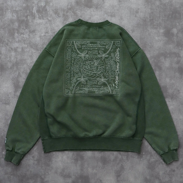★新品 The Endless Summer TES CALIFORNIA BANDANA EMB PIGMENT SWEAT CREW NECK GREEN★