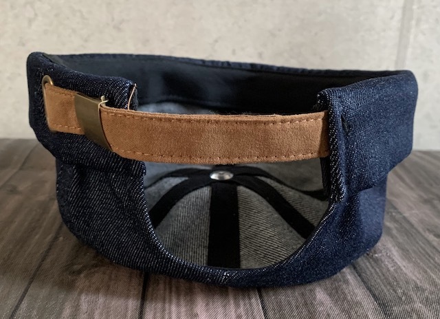 後ろのサイズ調節部分は合皮とアンティーク調の金具を使用してお洒落な印象に。