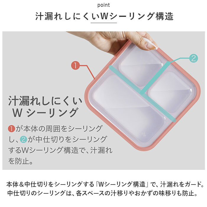| 商品説明 | ・・カバンの中で立てて持ち運べる!画期的なお弁当箱「フードマン 抗菌薄型弁当箱」500mlサイズが登場。 ・【荷物が増えず、通勤・通学にぴったり】 ・厚みわずか3.5cmのコンパクトサイズ。バッグやリュックに立ててかさばることなく収納できるので、ランチトートなどを別で持ち歩かなくても大丈夫! ・【汁漏れしにくいWシーリング構造】 ・本体&中仕切りをシーリングする「Wシーリング構造」で、汁漏れをガード。中仕切りのシーリングは、各スペースの汁移りやおかずの味移りも防止。 ・【4点ロックでしっかり固定】 ・フタと本体を4ヶ所で固定するので漏れにくく、立てた状態での持ち運びも安心。密閉力はそのままに、女性やお子さまもロックを外しやすい仕様。 ・【ワンプレートで盛り付けに悩まない!】 ・一体型の固定された中仕切りを装備。仕切りに合わせて詰めるだけで、簡単にお弁当が完成☆盛り付けに悩むことなく、楽しく作れるのが嬉しい! ・【美味しく見えるホワイトカラー】 ・内側の器部分は、食材の色が際立つホワイトカラー。お弁当がより美味しく見えて、毎日のランチタイムがもっと豊かに。 ・【食べやすく、すくいやすい形状】 ・おかずやご飯をすくいやすい、丸型のコーナー。汚れも溜まりにくく、簡単に洗浄OK。 ・【電子レンジも食洗機も】 ・フタを外して電子レンジで温めることができ、オフィスなどでも温かいワンプレートランチを味わえちゃう♪食洗機も使用できて、安心の抗菌加工済み◎ ・【お手入れしやすい一体成形パッキン】 ・パッキンは一体成形タイプ。フタとの間に汚れが入りにくく、パッキンを取り外して洗う手間も不要。 ・【女性やお子さまに最適なサイズ感】 ・容量は500ml。お茶碗約2.7杯分のご飯が入る大きさ。(※お茶碗約1杯を180mlで計算した場合) ・【選べるカラー】 ・年代問わず使いやすい、ナチュラルなクリアカラー。ご家族色違いで揃えるのもおすすめ! |