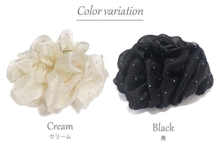 | 商品説明 | おおきなシアー素材のふわふわモチーフのバンスヘアクリップ☆ スタッズがたっぷり!きらきらして特別感もあります♪ 夜会巻き風のアップスタイルや、お団子など… アレンジ次第で色々な顔に♪ |