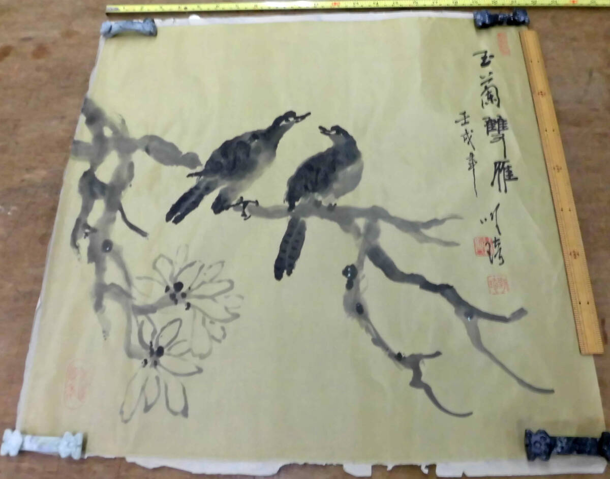 | まくり 玉蘭雙雁図 絹本 :唐もの | ||