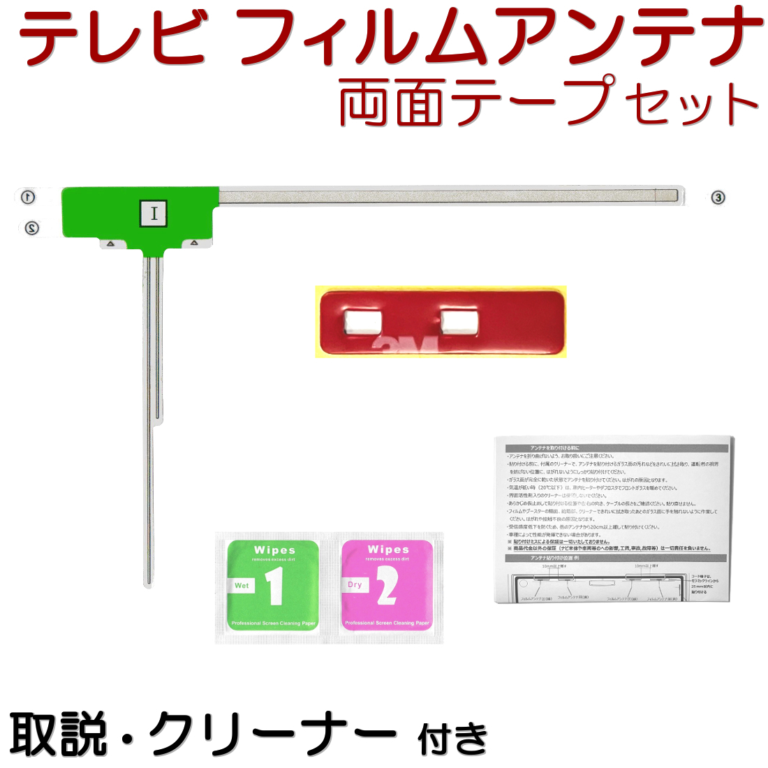 | AVIC-RZ500 カロッツェリア 楽ナビ フィルムアンテナ 両面テープ セット 互換品 テレビアンテナ カーナビ ワンセグ 取説 ガラスクリーナー付 送料無料 |