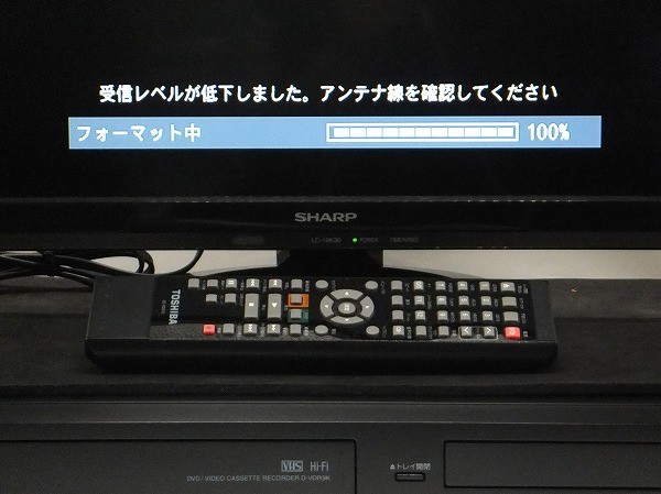 | 商品の説明 | ご覧いただきましてありがとうございます。 「TOSHIBA 地デジ搭載ビデオ一体型DVDレコーダー D-VDR9K」 の出品です。 ★☆★☆ビデオからDVDへのダビングや動作もOKな完動品、状態も良好できれいなおすすめ品です♪ ★☆★☆ こちらはVHSビデオから録画用DVD-R&DVD-RWなどの記憶メディアへダビングができる機種となっております。まずダビングしたいVHSビデオ(コピーガードのかかっていないもの)と録画用DVDをデッキ側に挿入し、リモコンボタンで録画モード(XP・SP・LP等)を選択してから、中央のダビングボタンよりワンタッチで簡単にダビング録画が行えます。また付属リモコンからもダビング録画を同様に行えます。 説明書、B-cas、リモコン、AVケーブル、アンテナケーブル付きです、お品物を受け取ったその日からテレビに接続してご家庭でご使用いただけます。(*旧テレビではなく現行のテレビに関しましては、接続方法など、テレビの説明書などをぜひご参考いただき、事前によくご確認くださいませ)オーバーホールメンテナンス済み(分解整備)で動作チェックも良好な一品です。お受け取り後に万一動作不良があった場合は速やかに対応させていただきますので、その場合は取引ナビへどうぞご連絡くださいませ。お探しの方がいらっしゃいましたらこの機会にぜひどうぞ♪ ーオーバーホール(Overhaul)解説ー こちらのお品物は一度部品単位まで分解した後に,清掃・再組み立て作業をしております。同時に機体の改善・点検も行っております。「オーバーホール済み」とはそれらの整備・点検作業が無事に完了したお品物です。例えばメンテナンスされていない中古品においてはその大半が、外見ではわからないくらい内部は機体が吸い込んだホコリやゴミなどでほぼ汚れております。また長年のご使用による経年変化により、ギヤ部分のグリスが固化し動きが悪くなったり、内部の駆動ベルトが劣化したり、ビデオが詰まって出てこなくなったり、ディスクを読み込まなくなったり、トレイが開かなくなったり、そのさまざまな要因が重なり故障の原因となります。オークションサイトやアマゾン、リサイクル店で中古を購入したら機体内部がホコリで真っ白だったなんてこともよくあります。経験上とくにビデオやレコーダー系のデッキでファン内臓の物は、中にホコリや雑菌の巣窟となっている場合も少なくありません。ファンから噴き出す匂いなども伴い衛生的にもあまりよろしくはありません。当方は機体をすべて分解した後に、機体の一番下の鉄板プレートのベースから順々にクリーニングを実施し、再組立てと点検を行い丁寧に仕上げております。オーバーホール整備後はまず機体本体がずみずみまでピカピカになり、各部の動きもスムーズとなり、より安定した動作状況下でご使用いただけることと思っております。 ![]() ![]() 【動作チェック】 ★☆ 動作確認はすべて当方手持ちの品物にて取り行っております ★☆ ![]() ![]() ![]() (VHSビデオからDVDへビデオダビング中) ![]() (メインメニュー画面) ![]() (フォーマットやファイナライズもOK、動作確認済みです) <主な動作チェック項目> 〇VHSビデオ再生・再生送り・再生戻し・一時停止・早送り・巻き戻し・停止【基本動作OK】 〇DVDビデオ再生・再生送り・再生戻し・一時停止・早送り・巻き戻し・停止【基本動作OK】 〇VHSビデオ ⇒ DVD-R(CPRM対応)DVD-RW(CPRM対応)【ダビングチェックOK】〇DVD-R(コピーガード無し映像) ⇒ VHSビデオ 【逆方向ダビングチェックOK】 〇録画用DVD-R・DVD-RWディスクのフォーマット・ファイナライズ【OK】 〇市販品ならびにレンタルDVDソフトの再生・その他音楽CDの再生【OK】 〇地デジチャンネル設定後、録画用DVDならびにVHSビデオへ直接番組録画【OK】 〇リモコンから番組表ボタンよりタイマー予約録画【OK】 〇本体ならびにリモコンの各ボタンのチェック【OK】 〇ビデオ挿入・取り出しならびにDVDトレイ開閉チェック【OK】 〇ビデオやDVD再生時の映像出力モニターチェック【OK】 *当方出品物デッキの「ビデオ⇒DVD ダビングテスト」は、再生時間が1時間30分~2時間程度のVHSビデオにて、整備後毎回3~5本 「ビデオ ⇒ DVD」 のダビングの動作確認を行っております。 *コピーガード信号の入ったビデオソフトやDVDソフトは、機体仕様上ダビングはできません。 *当方のダビングチェックではメーカー推奨の「DVD-R」と「DVD-RW」の2種両方の録画用DVDディスクにてダビング動作を確認済みです。 *使用のメディアは三菱ケミカルメディア(I・O DATA)【バーベイタム】DVD-R(CPRM対応) DVD-RW(CPRM対応) にてダビングチェック動作確認済みです。 *こちらのデッキはテレビやモニターへの接続はHDMIケーブルは非対応になります。メインは3色(赤白黄)AVケーブルでの接続です予めご了承くださいませ。 *なおこちらのデッキは簡易地上デジタルチューナー搭載機で、現在デジタル放送録画にも対応しております。地デジ受信設定(東京)や番組録画もチェックOKでした。ハー