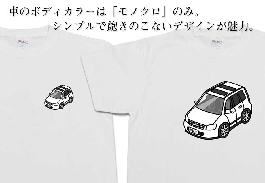 車のボディカラーは「モノクロ」のみ。シンプルで飽きのこないデザインが魅力。クールなモノトーンのコーデでお洒落な大人の雰囲気を醸し出します。Tシャツデザインのベースは2種類。【ノーマル/ワンポイント】をラインナップ。Tシャツ以外にも、キーホルダーやスマホケース、クッションなども同シリーズでラインナップしています。【すべて受注生産です】 |