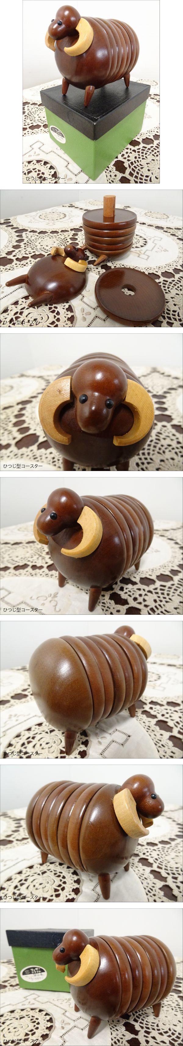 昭和レトロ 羊 ひつじ 木製コースター 5枚 置物 第一銀行記念品 当時物 | |||||||||