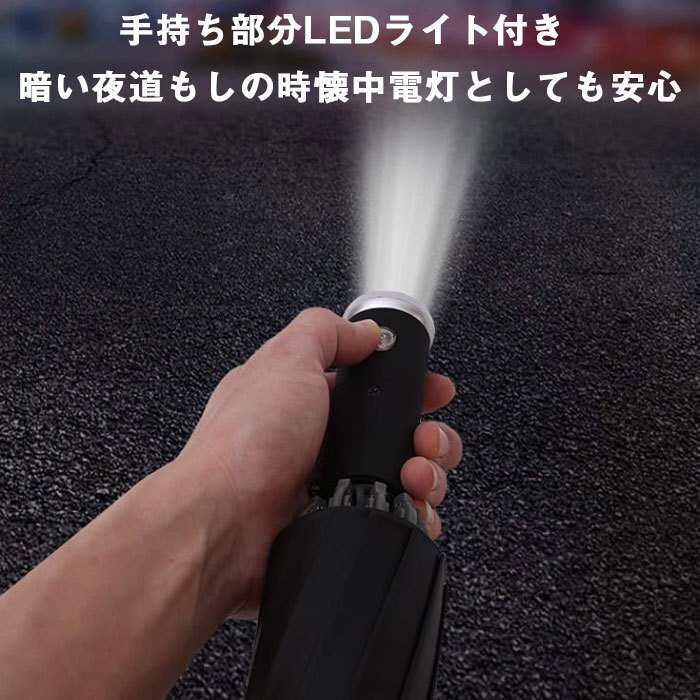 雨晴兼用傘折りたたみ傘 傘 ウォーターフロントLEDライト三つ折折りたたみ傘 自動開閉紫外線防止 晴雨兼用傘 ☆グリーン