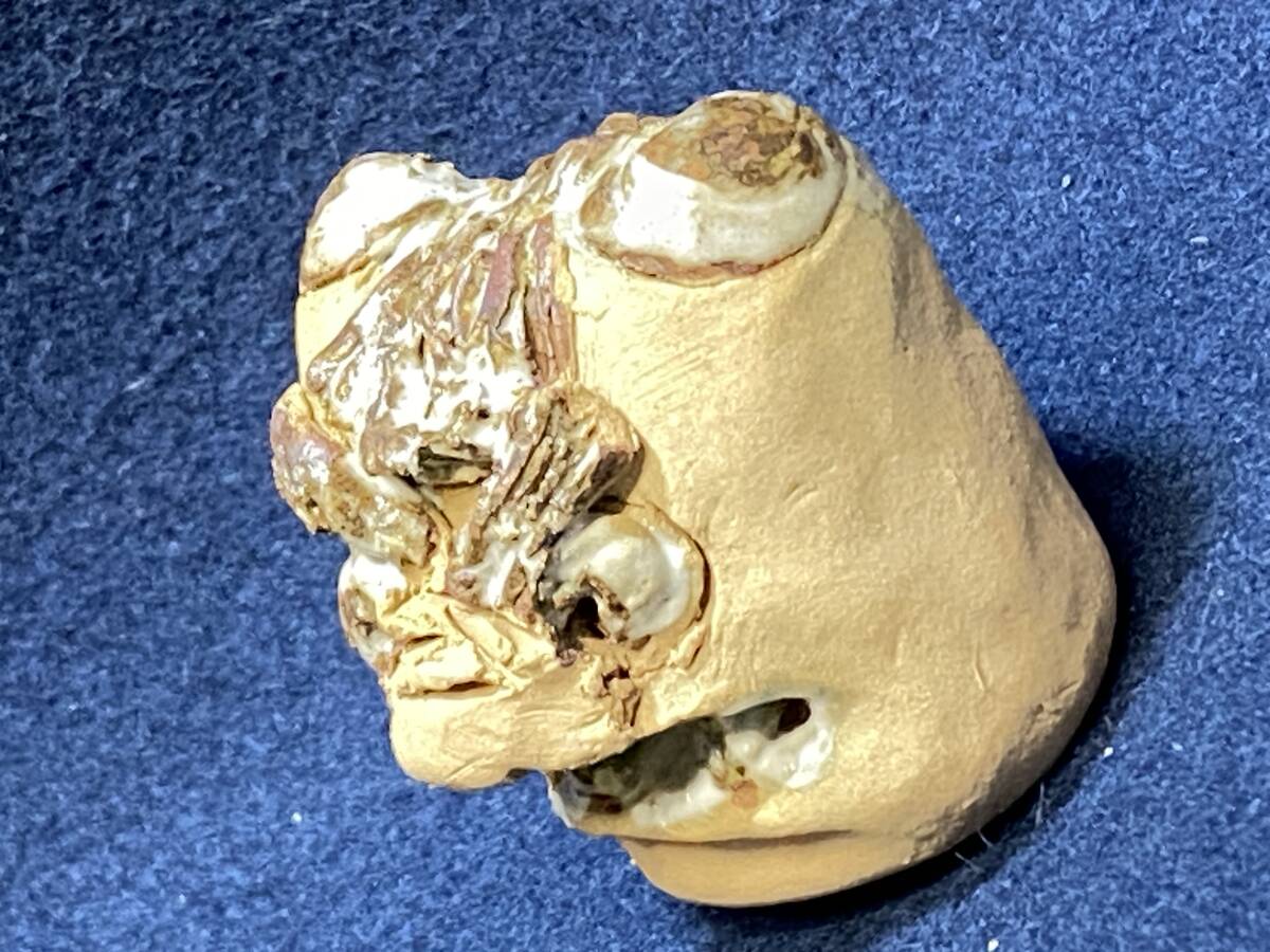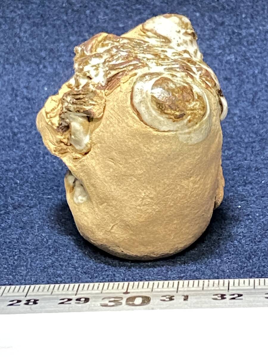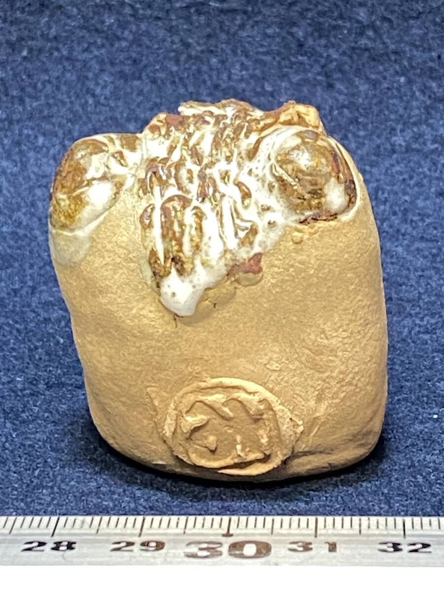 作家不明・童子+鬼っ子モチーフ・茶系釉薬・美品約2,000〜4,500円(参考:平均落札価格は約2,000円)