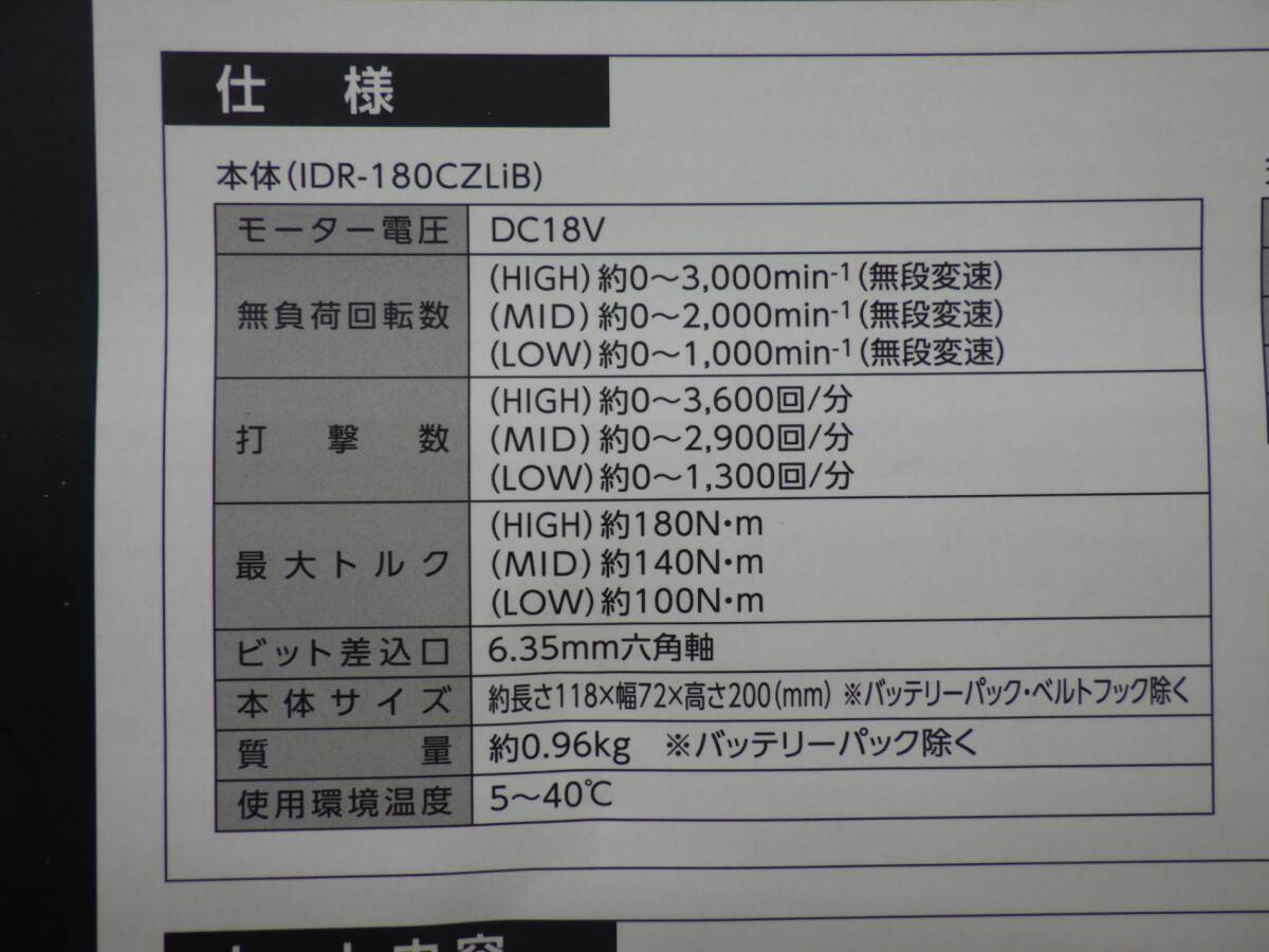 | 商品型番 | IDR-180CZLiB |