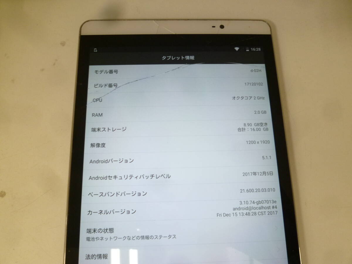 | #41929 【画面割れ】docomo ドコモ dtab Compact d-02H ファーウェイ ジャンク 判定〇 | ||