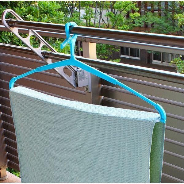 大判サイズのバスタオルが2枚干せる ・最大干し幅約70cm。 ・クリップを開かずカモイに掛けることもできます。 ・直径38mmまでの太竿もOK。 ・アーム2本で風通しが良く、厚手衣類も乾きやすい。 生産地 : 中国 サイズ : 製品サイズ(約):幅455~760x奥行15x高さ255mm 製品重量(約):300g 素材 : ポリプロピレン 注意事項 : 屋外で使用する際、強風の時は室内に取り込んでください。 ブランド : レック |