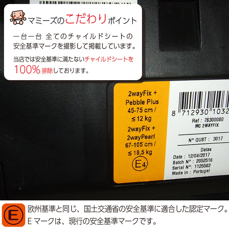 | 側面衝突に対応、安全性の高い、後ろ向き乗車の長期使用を実現するI-SIZE適合モデル。 マキシコシベビーシート専用の取付ベースです。 対応チャイルドシート: ・ペブル プロ アイサイズ ・ペブルプラス ・ペブル ・カブリオフィックス ・2wayPearl(ツーウェイパール) 【製品仕様】現状優先 ・本体重量:約6.5kg ・安全基準:Eマーク取得済み製品です。 |