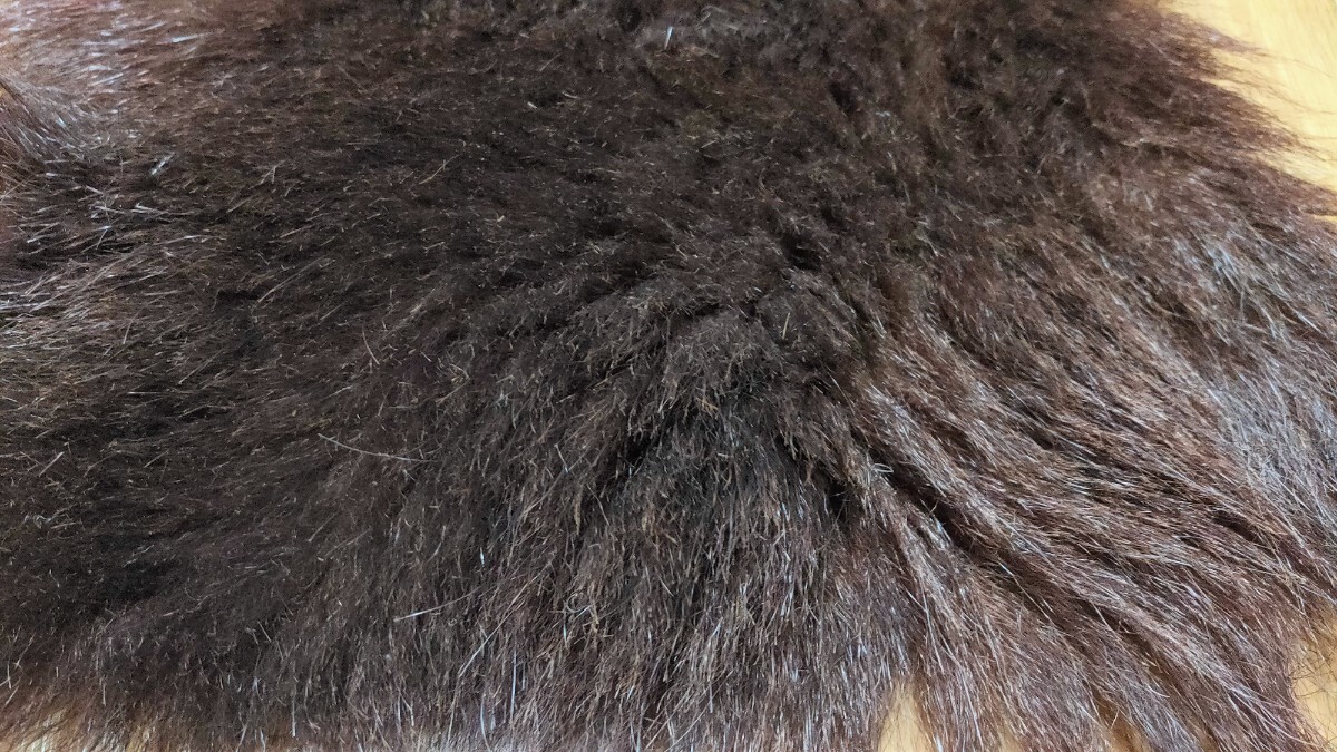 茶褐色の毛色が特徴。金毛、銀毛は非常に美しいが流通量は少ない。冬毛は毛の根本付近が縮れた「綿毛」が生え空気をホールドするのでクッション性及び保温力が非常に高い。鹿と比べると抜け毛は少ない。(個体差あり)(冬、厳冬期用)