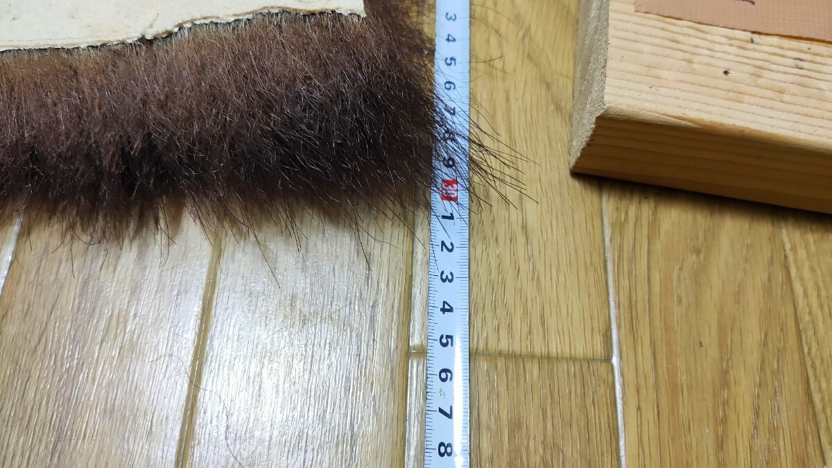 ●注意●出品後に上下方向に丸めて(ロールして)保管しており、その状態での発送となります。折り目などがついた場合や毛並みの修正は、熱いお湯に浸したタオルなどをかけて柔らかくし、粗目の櫛などで整えた後に重しを乗せたりする事で修正お願い致します。