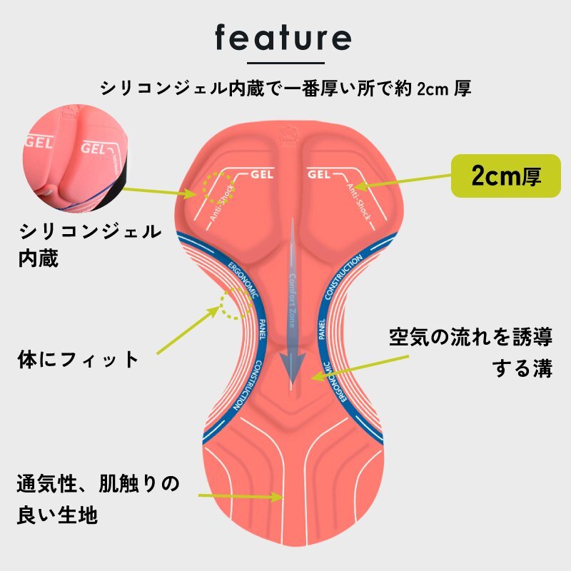 秋冬向けのサイクリングに最適な万能サイクルビブパンツ。 裏起毛素材で保温性を高めて冷えてくる季節に最適です。 特徴としてサイドと腰にメッシュのポケットが装備してあり、スマホやマスクなど様々なアイテムを収納できるとても便利なポケットです。 サドルとおしりの間に超極厚3Dメガパッドがある事によりお尻の痛みを軽減します。 ビブタイプの特徴でウエスト部分に締めつけがないので長時間快適です。 レースからロングライドまで幅広い用途に。 [超極厚パッド] 人体工学に基づき、お尻、会陰部に衝撃吸収の分厚い約2cmシリコンジェル内蔵パッドを配置 真ん中には空気の流れを誘導する溝デザイン 両側の溝は人体構造に合わせたフィット感でペダリングの邪魔にならない。 [お尻の痛みを軽減] サドルの上に長時間座り走り続けるとお尻や股間が圧迫されて痛みがでて辛い。 楽しいはずのサイクリングも残念な気持ちに。 超極厚3Dメガパッドでこれらの症状を起こりにくくします。 [両サイドと腰にメッシュポケット] 補給食やスマホ、鍵などの小物を収納。 バッグなど持ち歩かない気軽なライドに便利です。 ポケットは弾力性があり物が落ちないフィットポケット。 [保温性] 内側は保温性を高める裏起毛素材で肌ざわりが良く柔らかく気持ちが良い。 [通気性] 背中部分はメッシュ素材で通気性が向上し熱籠りで暑苦しい不快感もおこらない。 [伸縮性・弾力性] スパンデックスを使用する事で伸縮性(ストレッチ性)がとても優れ、着用していても身体にフィット。 激しい運動でも動きにあわせて伸縮します。 [ストレッチ機能] ストレッチ素材で体にフィットするので、ペダリング時もストレス無く長時間使用できます。 肩ひもも柔らかく長時間でもストレスフリーに。 [反射リフレクター] ビブパンツのサイド片方にリフレクターを採用。 夜間の走行を少しでも安全に。リフレクターが無いより視認性がUPします。 素材87% polyester, 13% Spandex カラーブラック 季節秋冬向き ・商品は入荷によりキズがある場合があります。 その場合、保証対象外になりますのでご了承お願い致します。 ・ディスプレイ環境により実物と色が異なる場合が有ります。 ・入荷時期により予告無く一部仕様変更する場合が有ります。 |