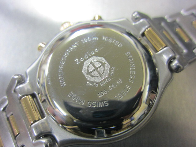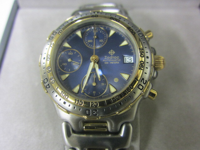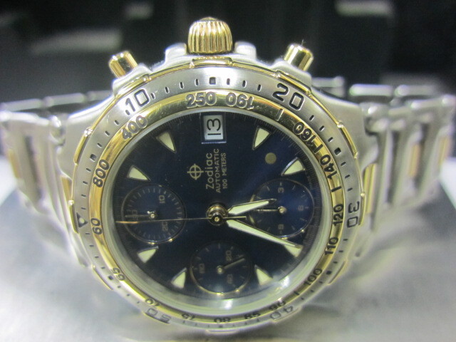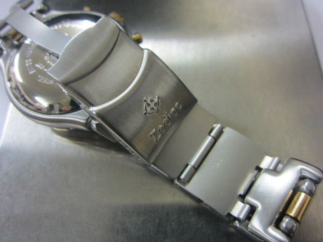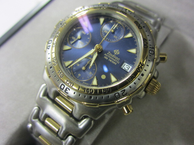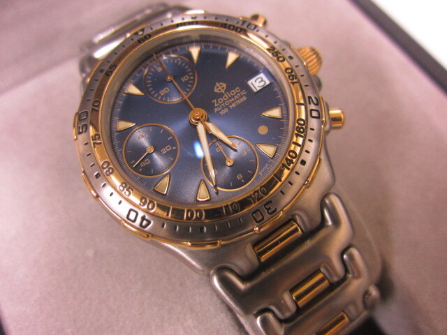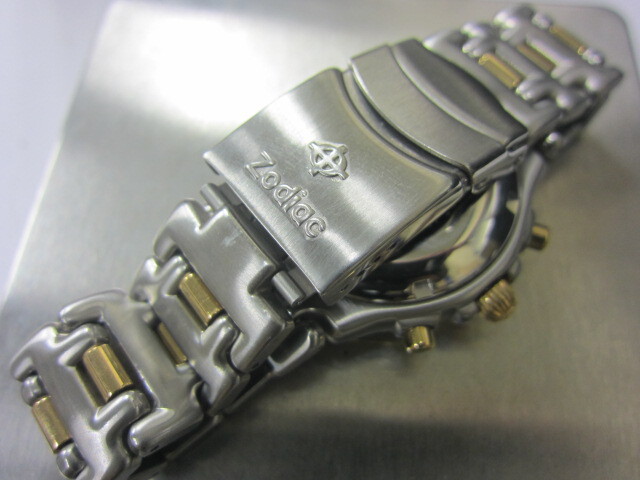 ■’90年代のゾディアックと言えばレッド・グリーン・ゴールド・ブルー等のポイントシリーズで知られていますが、こちらはゴールドポイントの自動巻きクロノグラフです。