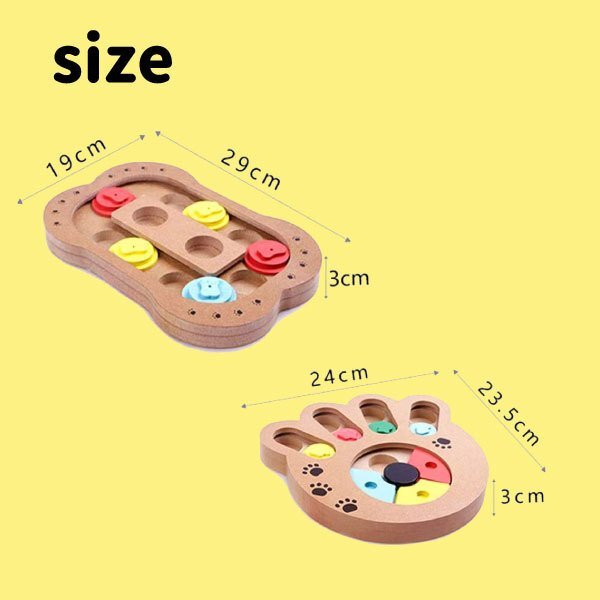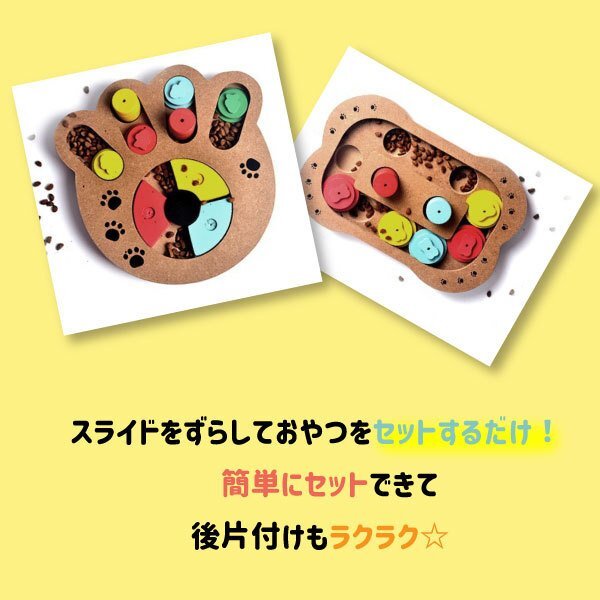 | ☆知育玩具 ノーズワーク 木調 ※オーダーフォームにタイプをご入力ください。 (ボーン,パッド) 【商品名】 知育玩具 ノーズワーク 木調 【タイプ】 ◆ボーン ◆パッド 【素材】 MDF素材 【この商品の特徴】 ◆犬や猫の知育、ボケ防止に役立つおやつ入れです! ◆スライドパッドの下におやつを隠せば、ワンちゃんの嗅覚を刺激。本能を呼び起こして脳や運動能力を活発化させます。 ◆お留守番のときのおやつ入れにすればワンちゃんも猫ちゃんも楽しくおやつタイム♪ ◆噛み付いたり、爪で引っ掻いても丈夫な素材なので壊れにくい安心設計! ◆餌の量も少量で早食い、食べすぎ防止にも効果アリ! ◆設置は簡単、スライドをずらして設置するだけ。後片付けも簡単です。 キーワード ( 猫 兼用 おもちゃ ネコ 木調 骨型 肉球型 オモチャ ペット用 ゲーム しつけ 健康 ) | ||||