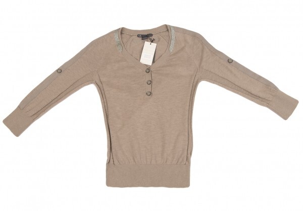 | アルマーニエクスチェンジARMANI EXCHANGE ショルダーテープヘンリーネックコットンニットトップス モカXS |