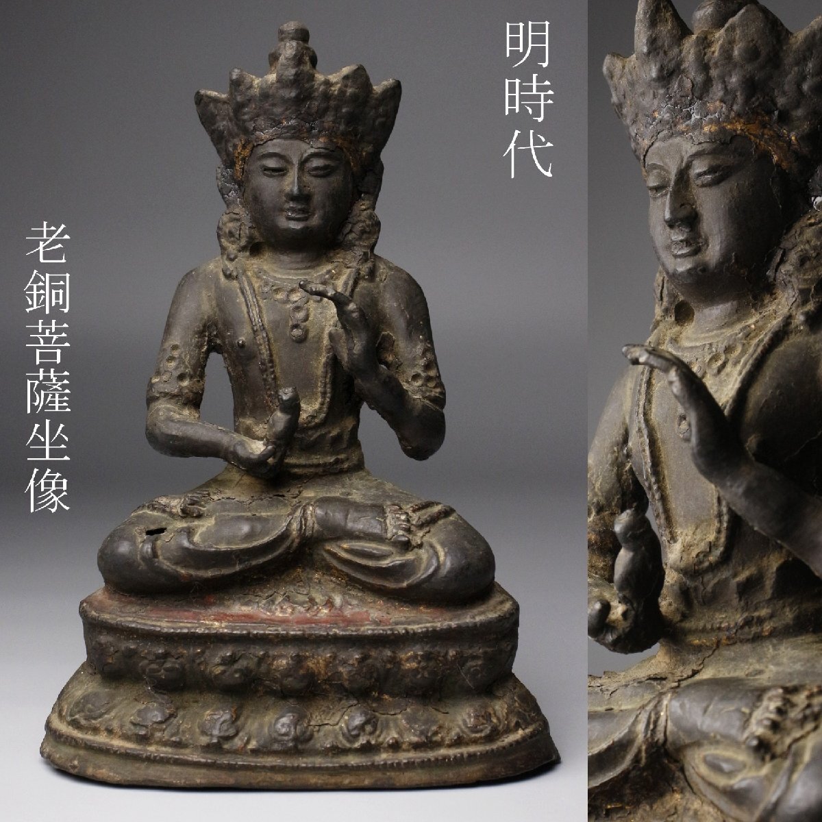 [.QTW]25.10 25101911* * * 商品詳細 * * * ここでしか出逢うことのできない唯一の美をご紹介させて頂きます。 経年を経た重厚な肌地、貫禄ある佇まいをした菩薩像のご紹介です。 細やかな装飾が施されており、鮮やかな金色が残る様からは 煌びやかな姿をしていた事が伺えます。 顔立ちも良く、鼻筋の通った精悍な顔つきにしなやかな姿が優雅です。 高貴な印象を与える時代の逸品をこの機会に是非お求めください。 ■サイズ/横14cm×高20.5cm×奥行8㎝ 重量1283g ■状態/経年による傷み、スレ、キズ、サビ、割れ、剥げがございます。 ※写真にてご確認、ご了承の上ご入札下さい。 ![]() !かんたん決済 * * * 発送詳細 * * * 入金確認後3営業日以内に発送致します。 ※直接引き取りも可能です。 60~160サイズにつきましては 佐川急便、ゆうパックのどちらかで発送いたします。 ゆうパック発送の場合、弊社の発送日から追跡サービスに問合せ番号が反映されるまで 約1日ほどお時間がかかりますのでご了承下さい。 * * * 注意事項 * * * 運送中の破損があった場合は速やかに当社までご連絡下さい。 保険を利用するのに受取連絡後に運送会社による現場での破損状況確認が必要となります。 勝手に返送されますと保険の適用外となりますのでご注意ください。 * * * * * * お問い合わせ:082-236-8669 |