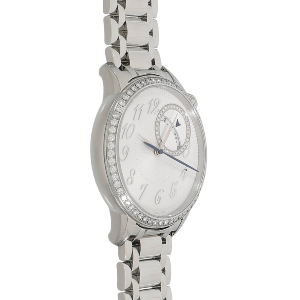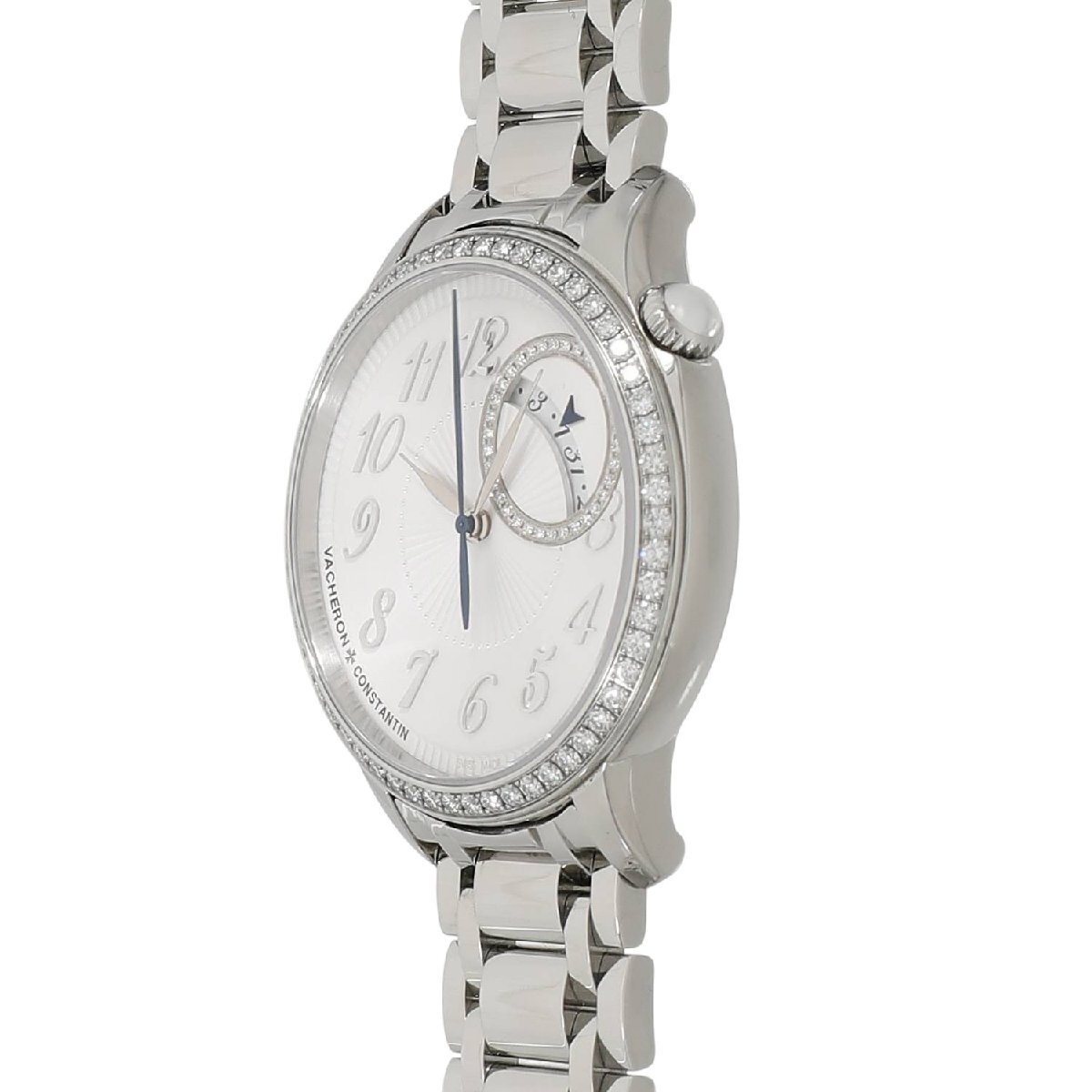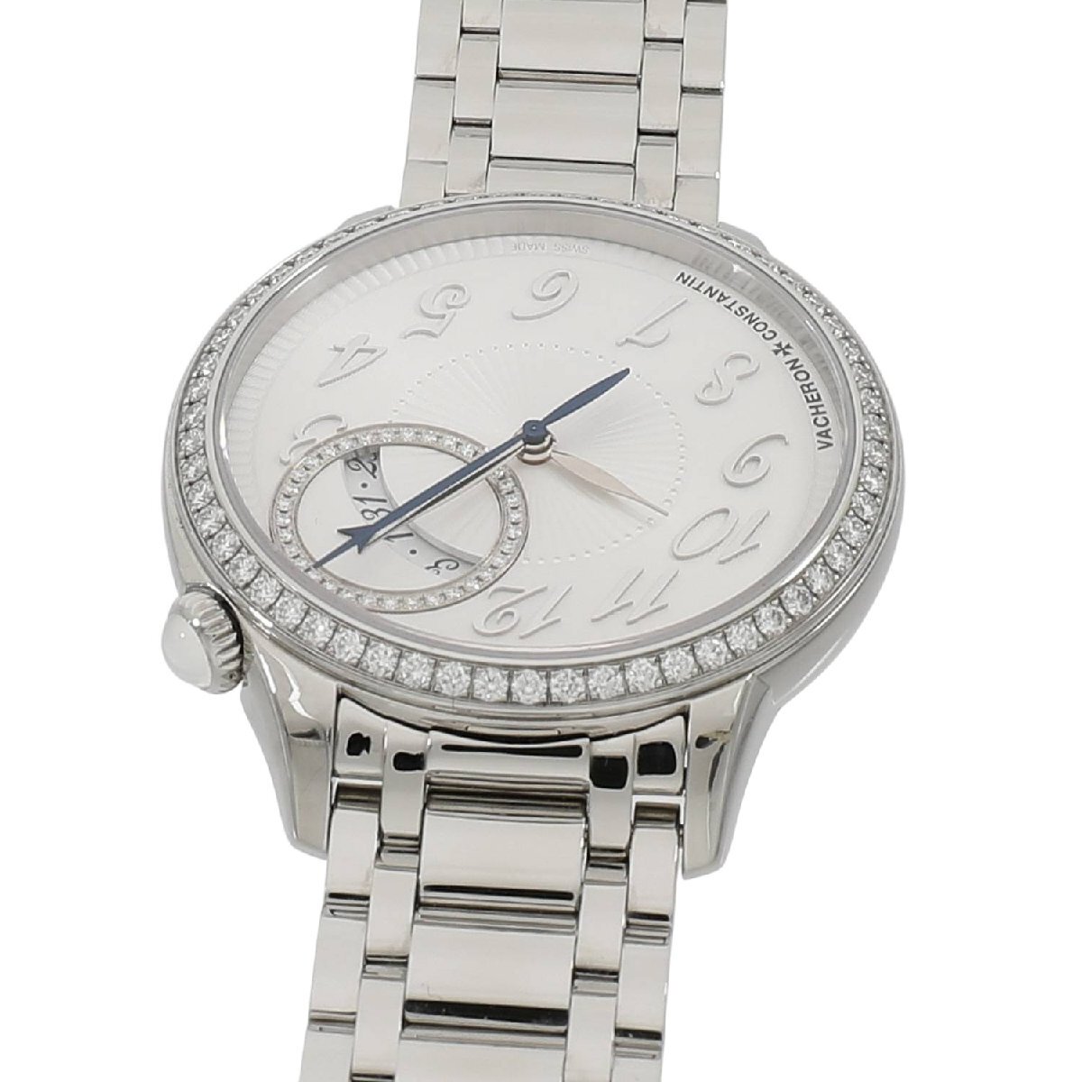 | モデルについて | 老舗メゾンであるヴァシュロンコンスタンタンの新たな女性向けのコレクションとして2020年に展開を開始したエジェリー。オートオルロジュリーとオートクチュールの世界観の融合をコンセプトとしており、洗練されたデザインの美しいレディースウォッチを数多くラインナップしています。シルバーオパーリンカラーの文字盤には、オートクチュールのファブリックを想起させるプリーツ状のモチーフを施し、ベゼルと日付表示の外周部に合計92個のラウンドカットのダイヤモンドをセッティングしたエレガントなレディースウォッチです。1時位置にあるリュウズの先端にはダイヤルのカラーに併せ白いムーンストーンがセットされます。ケースバックはサファイアガラス製のスケルトン仕様となり、40時間のパワーリザーブを備えるヴァシュロンコンスタンタン社製Cal.1088を搭載しています。 |