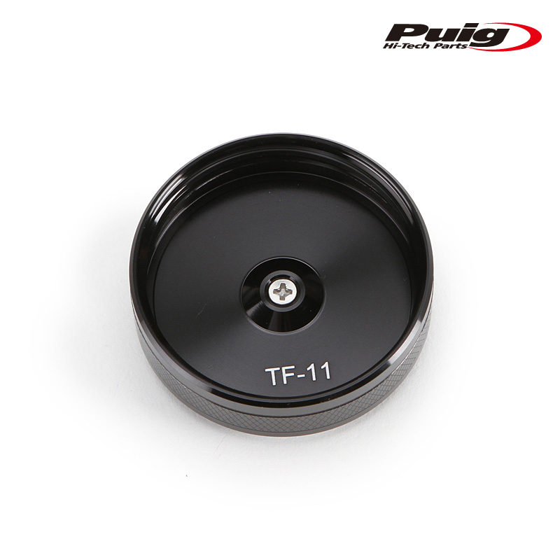 商品についてマシニング加工されたアルミ素材にアルマイト処理を施したリザーバータンクカバー。