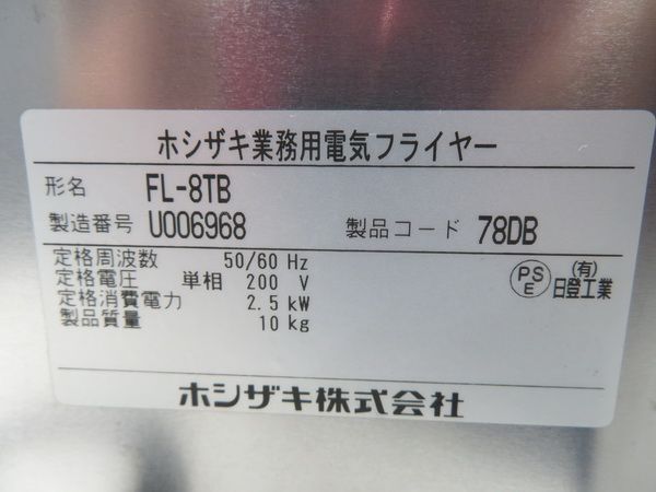◆ホシザキ 2019年◆卓上電気フライヤー FL-8TB 単相200V 265×441×321 サイズ:W265×D441×H321(mm) 電 源:単相200V 油 量:標準8L(最低5L~最高9L) 製品質量:10kg 定 価:218,000円+税 ご参考メーカーホームページはこちらです。よろしければご覧下さい! 出品にあたり動作確認・クリーニング済みです。 多少の傷・使用感等がありますので、予めご了承ください。 中古品ですので、画像をよくご確認の上、ご理解頂ける方のご入札をお願いいたします。 神経質な方はご入札をご遠慮ください。 気持ちの良いお取り引きにしたいと思いますので、ご不明な点等ございましたらお気軽にご質問ください。 | |