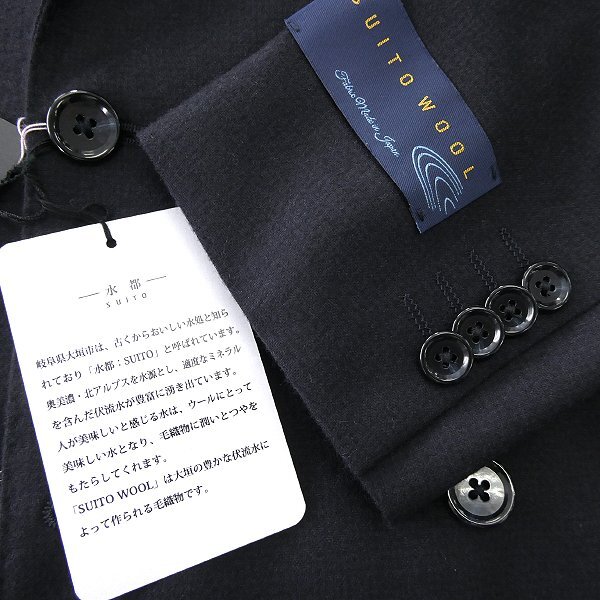※ハンガーは付属いたしません※ BE5サイズ(幅広体型のMサイズ相当) 胸囲98 胴囲94 身長170 ※写真は別サイズを使用している場合がございます※ ※商品に記載されたサイズ・寸法です※ 【ジャケット】 肩幅47cm 身幅56cm 袖丈59.5cm 着丈72.5cm 【スラックス】 ウエスト95cm(内回り1周) 股上28.5cm 股下90cm 裾幅22.5cm 腿幅32.5cm(股下10cm部分) 表地:毛100% 裏地 胴裏:キュプラ55% ポリエステル45% 袖裏上部(ストレッチ部分):ポリエステル65% 複合繊維(ポリエスエル)35% 袖裏下部:キュプラ100% 下衣裏地:ポリエステル100% ダークネイビー |