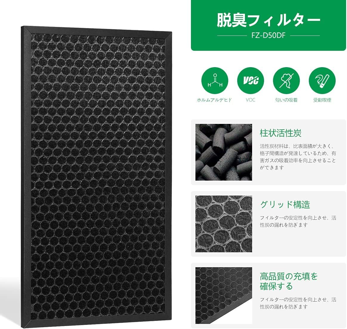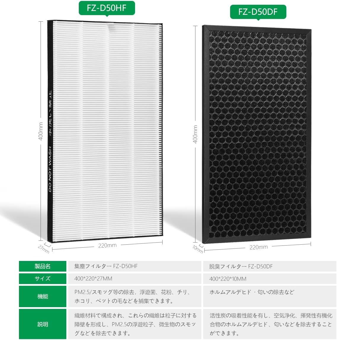 【2点セット】FZ-D50HF FZ-D50DF 加湿空気清浄機 集じん脱臭フィルター KC-F50 KC-D50 KC-E50 KC-50E1 KC-50E2 KC-50TH1 KC-500Y6 KC-500Y7 交換用 加湿空気清浄機交換用フィルター2点セット FZ-D50HF FZ-D50DF「互換品」 【集塵フィルター】 PM2.5、花粉、アレル物質(ダ二のふん・死がい)、カビ菌、ホコリ、チリ、夕バコの煙(粒子)、ペットの毛などをしっかりキャッチ。 【脱臭フィルター】ニオイの強力分解、脱臭に加え、リビングなどに侵入した排気ガスなどに含まれる有害成分を低減します。料理臭、ペット臭、部屋干し衣類の生乾き臭、体臭、加齢臭などを消臭できます。 お使いのブラウザや設定により、画像と実際の商品との若干の色の違いが生じる場合がございます。 【対応品番】KC-500Y6-B、KC-500Y6-W、KC-500Y7-B、KC-500Y7-W、KC-500Y8-C、KC-500Y8-W、KC-500Y9-H、KC-500Y9-W、KC-50E1-B、KC-50E1-W、KC-50E2-B、KC-50E2-W、KC-50TH1-W、KC-50TH2-W、KC-50TH3-W、KC-D50-B、KC-D50-W、KC-E50-B、KC-E50-W、KC-E50A1-B、KC-E50A1-W、KC-F50-C、KC-F50-W、KC-F50E3-C、KC-F50E3-W、KC-G50-H、KC-G50-W、KC-H50-W、KC-H500Y-W、KC-J50-W、KC-J500Y-W、KC-L50-W、KC-L500Y-W、KI-GS50-H、KI-GS50-W、KI-HS50-H、KI-HS50-W、KI-JS50-H、KI-JS50-W、KI-LS50-H、KI-LS50-W、KI-S50E5-H、KI-S50E5-W、KI-S50E6-H、KI-S50E6-W、KI-S50E7-H、KI-S50E7-W、KC-N50-W