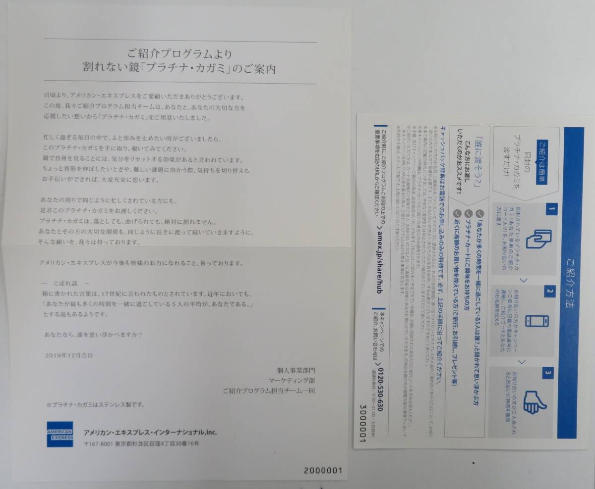 コメント アメックス AMEX 割れない鏡 アメリカンエキスプレス・プラチナメタルカード・ミラー 非売品 未使用品です