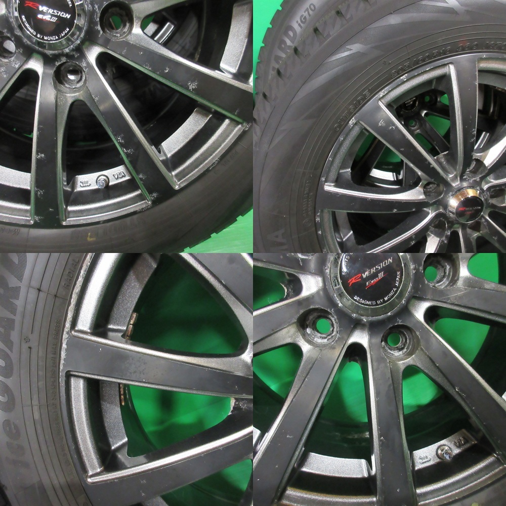 ・備考 【タイヤ】 残り溝:80%-85%山程度 ※これからも長く冬シーズンにご活躍いただける溝深さです。 【ホイール】 塗装の浮き:中程度に有(中心部/裏側/スポークの横) 塗装の剥げ:中程度に有(裏側/スポークの横) 塗装のクモリ(くすみ):少し有(ホイール表全体) 腐食・サビ:中程度に有(センターキャップ/ホイール表全体) 円周部ガリ傷:1-2か所程度 小傷や浅い傷等:中程度に有 汚れ付着:少ない ホイールの一言評価『 使用感有 』 ※できるだけ詳細調査致しました。使用品・中古品となりますので、商品画像や商品説明を良くご覧いただいてご検討下さいませ。 ・発送について ![]() | ||||