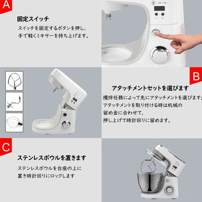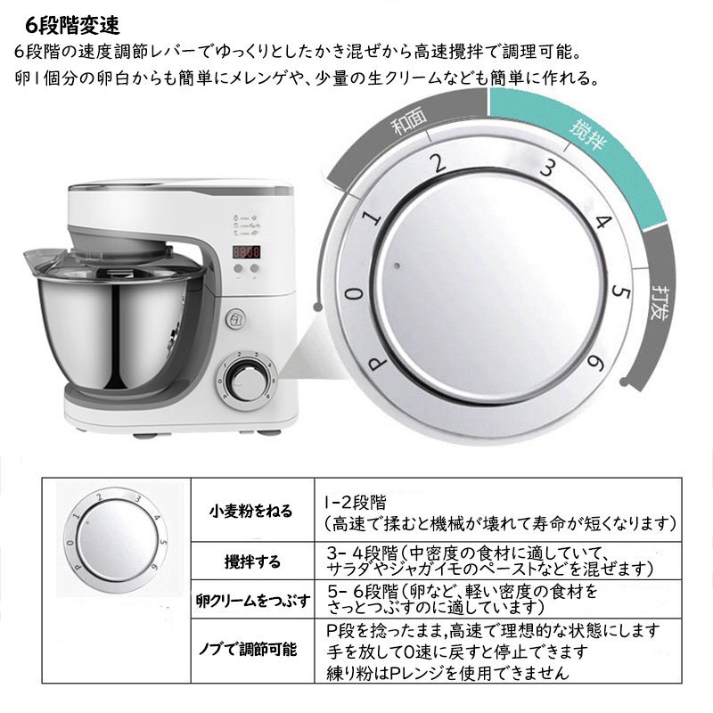 【多機能なアタッチメント&6つのスピードモード】スタンドミキサーには、ホイッパー、ドゥフックとビーターの3つのアタッチメントが付属し、6段階のスピードモードで、さまざまな料理ニーズに対応でき、信頼できるキッチンパートナーです。| 出价者 | 信用 | 价格 | 时间 |