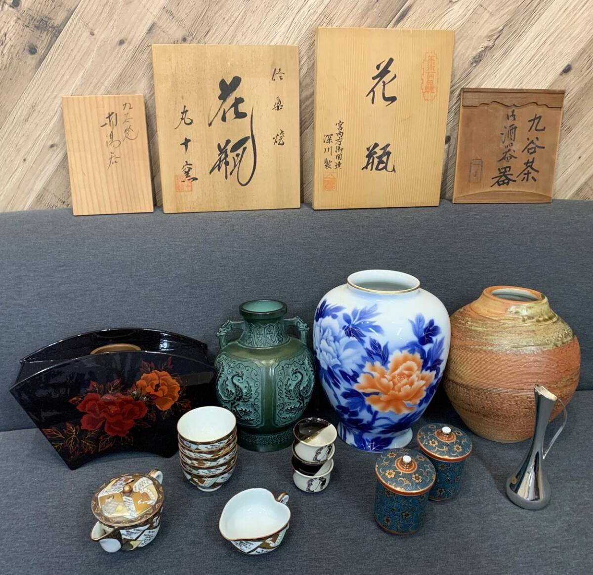 | ◇すべてが逸品!! 花瓶 花器 湯呑 壺 陶器 信楽焼 有田焼 九谷焼 黒漆花器 花生 八雲塗 一輪挿 木箱 箱 セット まとめ【352~3105SY】K23 | ||
