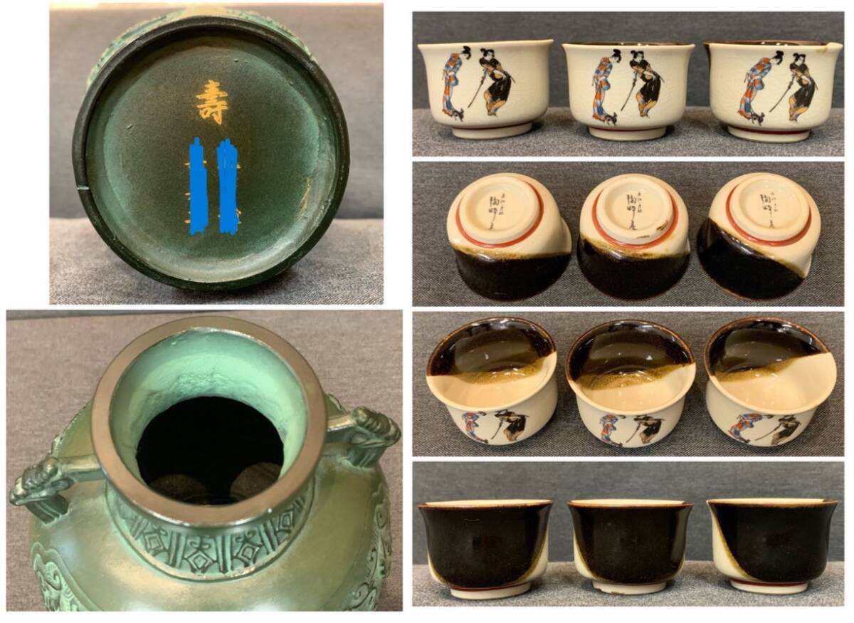 | 商品説明 | ご覧いただきましてありがとうございます。 ◇すべてが逸品!! 花瓶 花器 湯呑 壺 陶器 信楽焼 有田焼 九谷焼 黒漆花器 花生 八雲塗 一輪挿 木箱 箱 セット まとめ 【商品内容】 花瓶 花器 湯呑 壺 陶器 信楽焼 有田焼 九谷焼 黒漆花器 花生 八雲塗 一輪挿 木箱 箱 セット まとめ 【商品詳細】 いただき物の保管品です。 焼き物ですので多少の降り物やくっつき、ひっつきはご了承ください。状態については画像でご判断いただきますようお願い申し上げます。すべて現状品とご認識ください。漆の花生は明らかに表面の状態が悪いです。画像1枚目を10枚目の木箱に入れ、発送いたします。セットでの出品となりますので個別のお取引のご相談はご遠慮ください。 すべてご理解いただいた上でご入札くださいますようお願いいたします。 当方素人のため専門的なご質問はお答えいたしかねます。 状態に関しましては、画像をご覧ください。 素人による検品の為、見落としがある場合もございます。 ご了承の上ご入札下さい。 詳しくは画像をご確認の上ご検討下さいますようお願い致します。 佐川急便にて発送させていただきます。 感じ方には個人差がございますので、状態を気にされる方や完璧をお求めの方はご入札をお控え下さい。商品内容は画像に写っているものですべてとなります。 ご入札の前によく商品説明及び画像をご覧いただきお品の状態をご理解いただいた上でご入札をお願い致します。(いかなる理由がございましても返品や返金等のクレームはお受けいたしませんのであらかじめご了承下さいませ) 販売後のサポートなど行っておりませんので、調整やメンテナンスなどは落札者様でお願いします。現状品ですので、不具合を理由としたものを含めノークレーム・ノーリターンでお願いします。 素人管理・素人出品の為、商品の説明不足や見落としなどあるかもしれませんので、写真にてご判断頂ける方、ご理解頂ける方のみご入札をお願いします。 注意事項は必ずお読み下さい。 | |