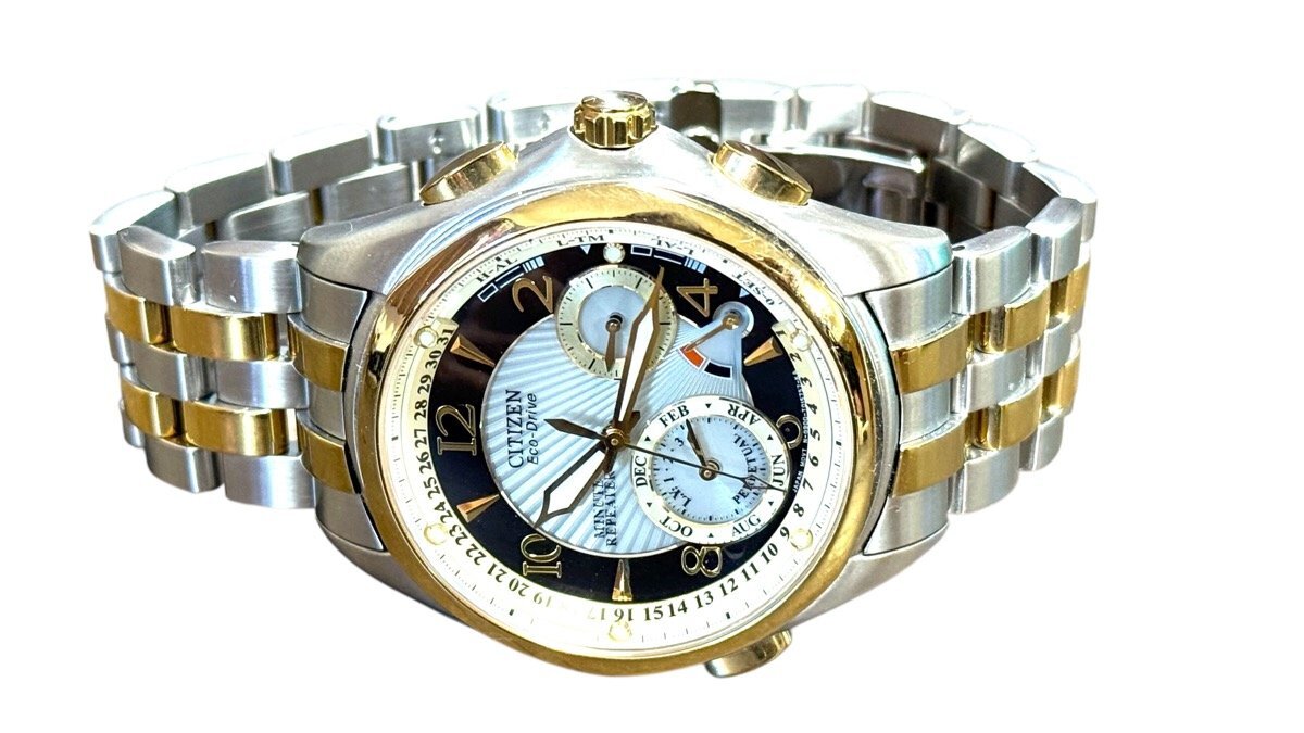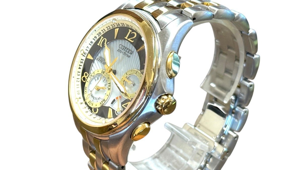 | ご覧いただきありがとうございます! 【ブランド】 シチズン アテッサ 【商品名】 腕時計 【サイズ】 フェイス4cm 内周17cm 【ムーブメント】 エコドライブ 【コンディション】 ランク『A』 補足:動いていません。現状でのお渡しです。小傷が若干ある程度で全体的に綺麗な印象です。