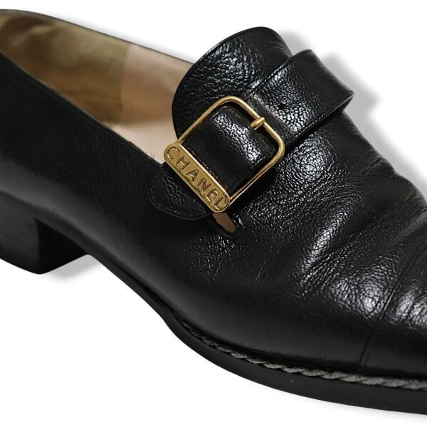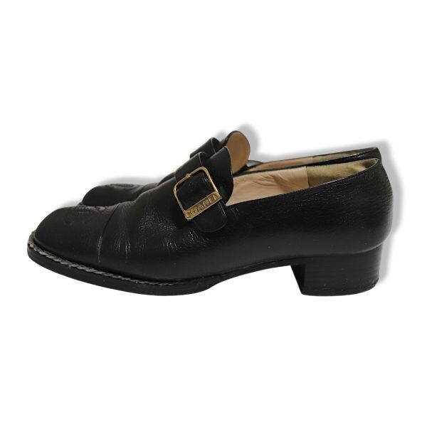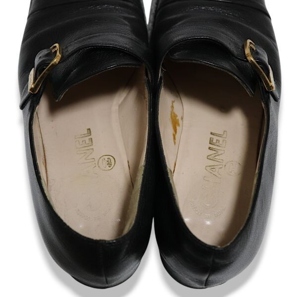 | ◆超レア◆ 正規品 Vintage CHANEL シャネル ココマーク CC ロゴ ベルト レザー ローファー 37 ブラック フランス製 | ||||