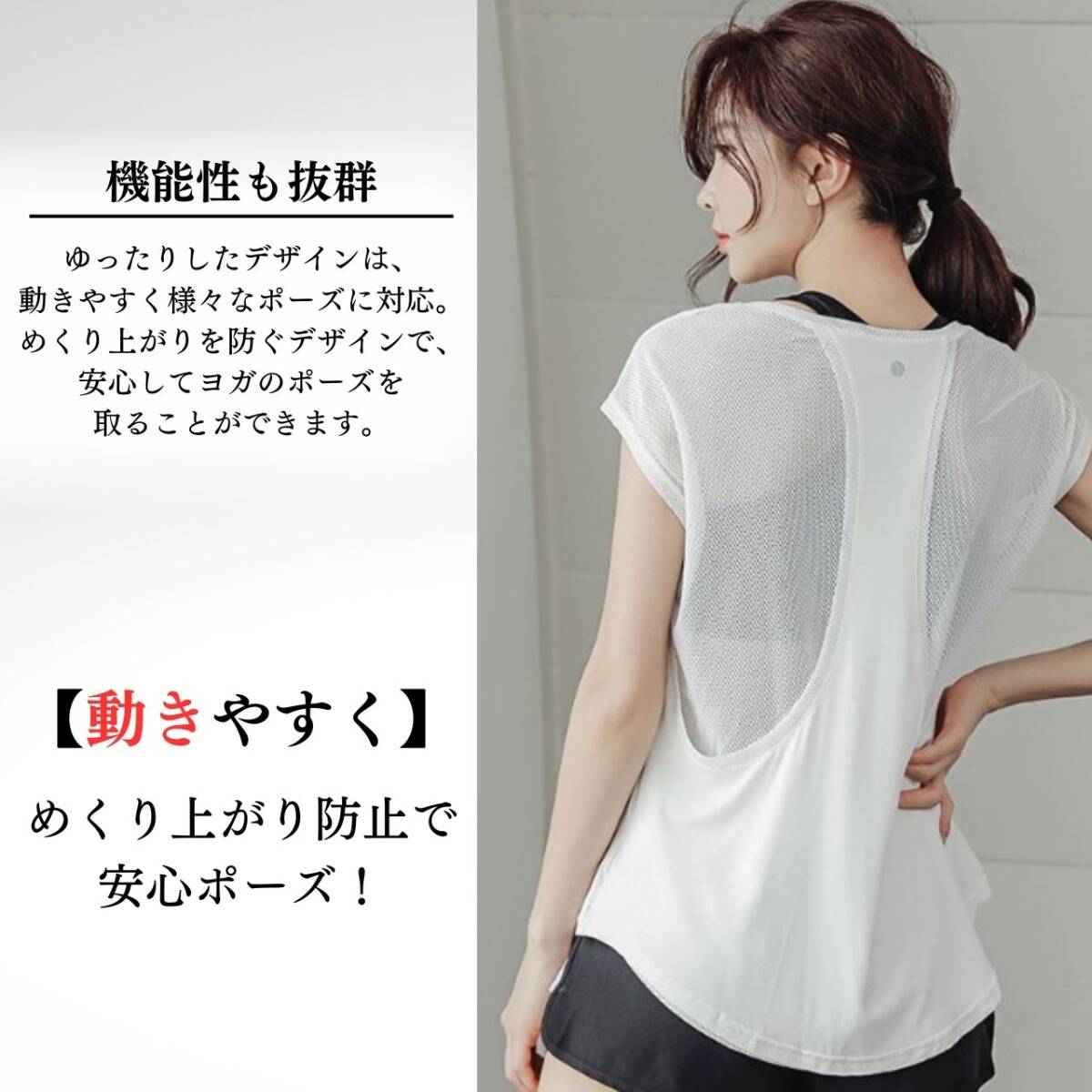【激しい運動にも】 吸汗性が高く、すぐに乾くため ヨガ以外のトレーニングにもご使用頂けます。【アレンジ】自分のスタイルに合わせて裾を絞ってショート丈にアレンジ可能。 自分らしいスタイルで着こなせるので、気分に合わせて長さを調整できます。【快適さ】メッシュ生地のバックスタイルが魅力。 通気性が良いので、汗をかいてもムレにくい。 透けて見えるチラ見せデザインが大人の魅力を引き立てます。【伸縮性】伸縮性があり動きやすく、軽やかで着心地抜群のビックシルエットデザインの半袖ヨガウェアトップス。ボディラインにフィットせずゆったりとしたトップスで前丈よりも後ろ丈を長くすることで 気になる腰回りやお尻など体型をカバーしてくれます。さらりとした生地感とバックデザインは通気性の良いメッシュ生地を採用。通気性もよく一枚でサラッと着ていただけます。【カラー】タイトル、商品画像1枚目をご確認ください。※商品の制作時期により 生地の色味やデザインに若干の仕様変更が生じる場合がございます。【サイズ】Sサイズ総丈 61cm脇下 31cmバスト 90cm裾 104cmMサイズ、Lサイズもございます。※平置き・メジャー採寸ですので 若干の誤差が生じる場合がございます。【素材】ビスコース 95%スパンデックス 5%【注意事項】・海外製品の為、多少の傷や汚れがある場合がございます。・送料の都合上簡易包装での発送となります。ヨガウェア トップス おしゃれ レディース スポーツ 半袖 メッシュホットヨガ ランニング ウォーキング フィットネス ストレッチ ピラティスジム 女 woman ロング丈 体型カバー トップス 口コミで人気 おすすめランキング 無地 むじ むぢ ポイント消化ブラック 黒 くろ モノトーン black ピンク ぴんく pink パープル purple 紫 むらさき ホワイト 白 white しろ